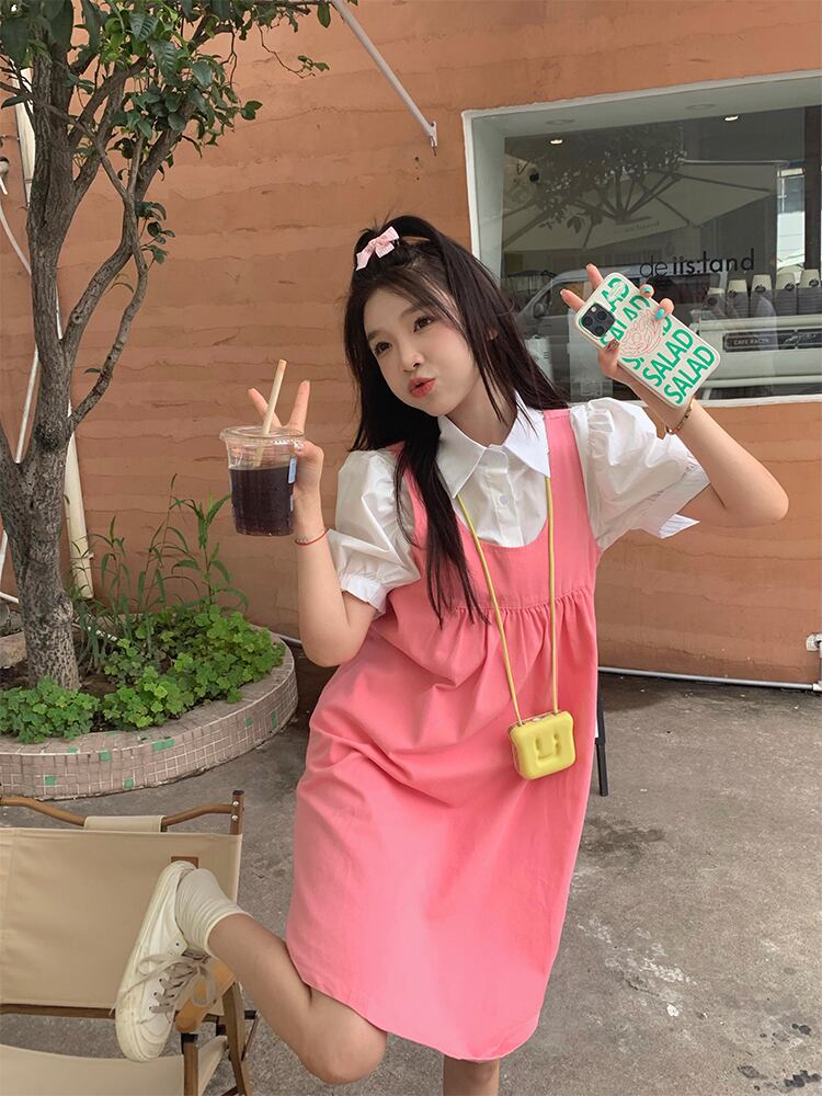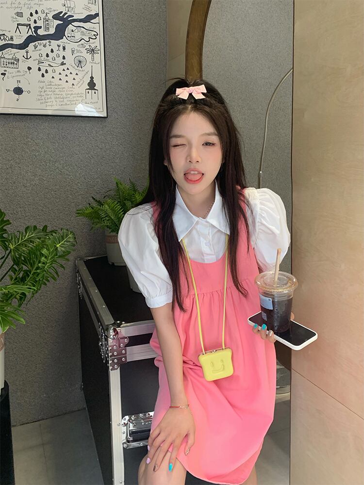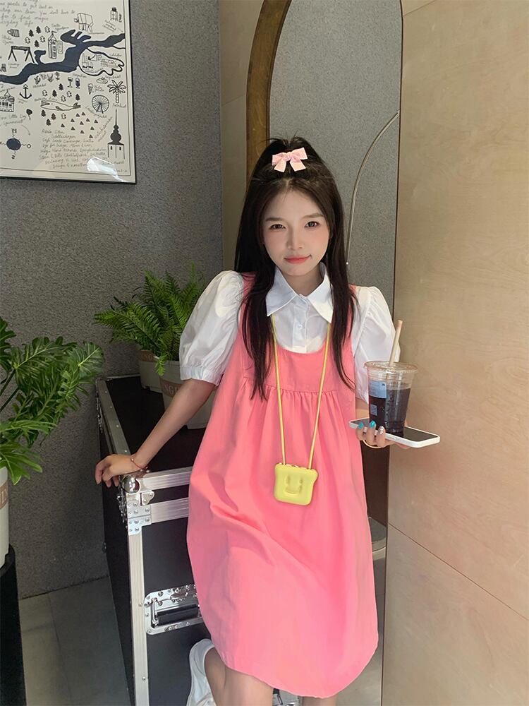 色:ピンクドレス,Singlepieceofホワイトshirt