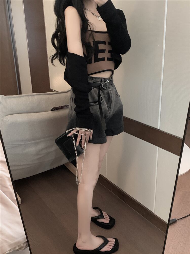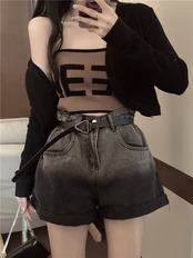 sense gradient color curly denim shorts women's summer 2022 new small tall waist loose wide leg pants trend サマー 夏物 ショーツ ブルマー ワイドレッグ ワイドパンツ 0921976923812272