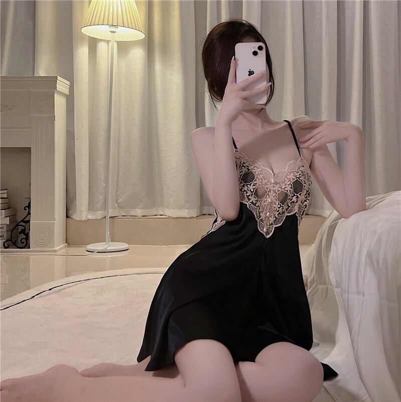 Sexy lace edge ice silk white suspender nightdress women's summer 2022 new pure desire wind backless pajamas home clothes ホワイト レース サマー 夏物 シルク ピュア 0921927492799584