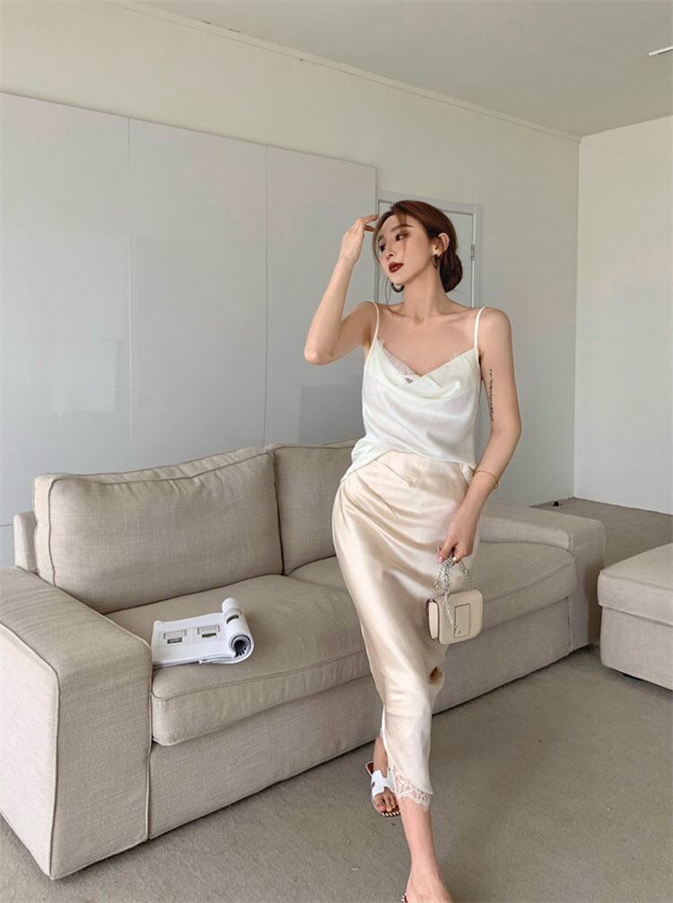 -quality white satin lace camisole women's outer wear summer 2022 new inner slim short top ショート ホワイト レース サマー 夏物 サテン スリム 0921920052907500