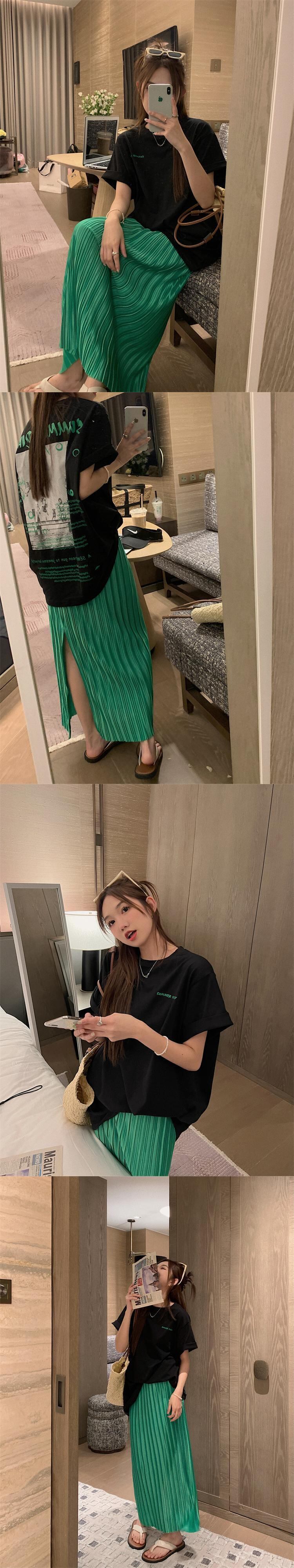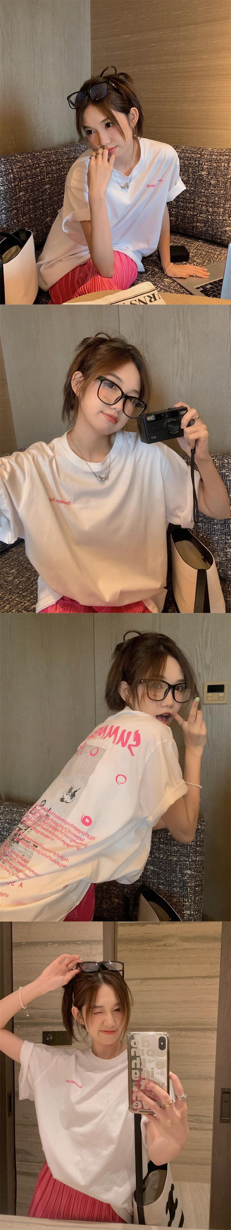 sense pattern printing short-sleeved T-shirt women's summer 2022 new loose mid-length all-match black top trendy ブラック サマー 夏物 Tシャツ 0921963502113158