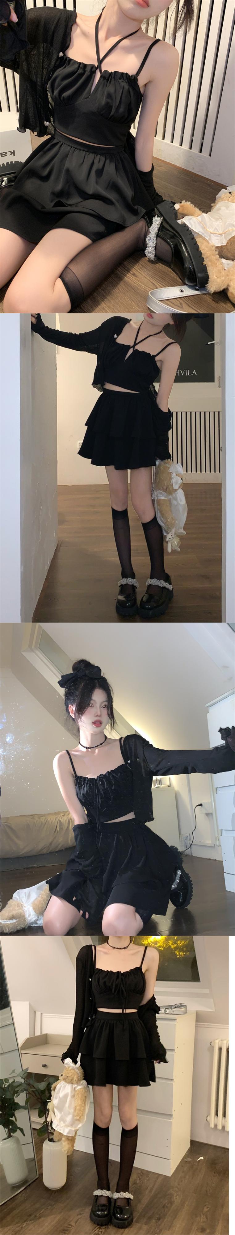 Hot black suit female summer 2022 new camisole sunscreen cardigan cake skirt fashion three-piece tide ブラック カーディガン サマー 夏物 スカート 0921949312363888
