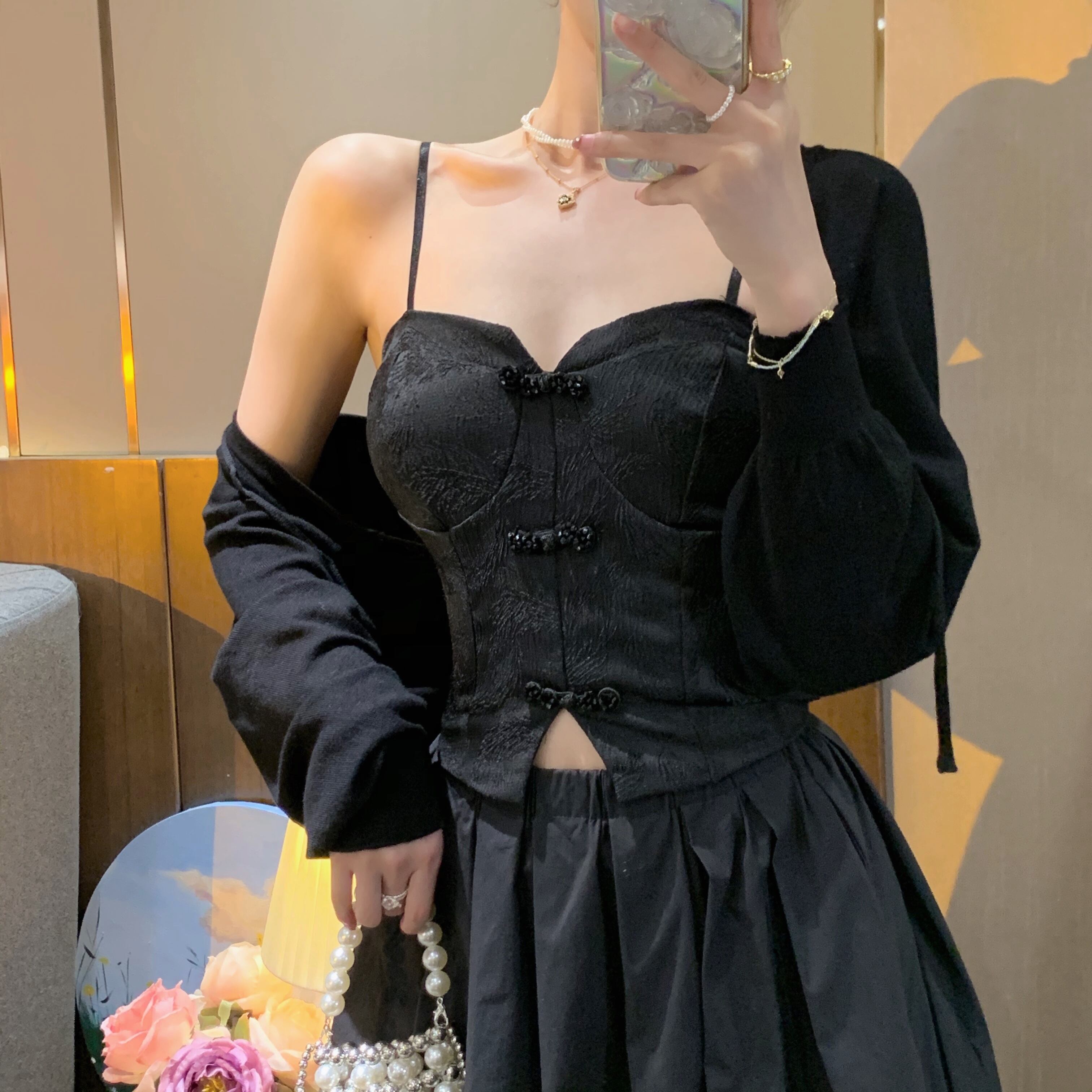 Hot design sense white camisole women's inner wear summer 2022 new slim slit short top outer wear ショート ホワイト サマー 夏物 スリム 0921968833122395