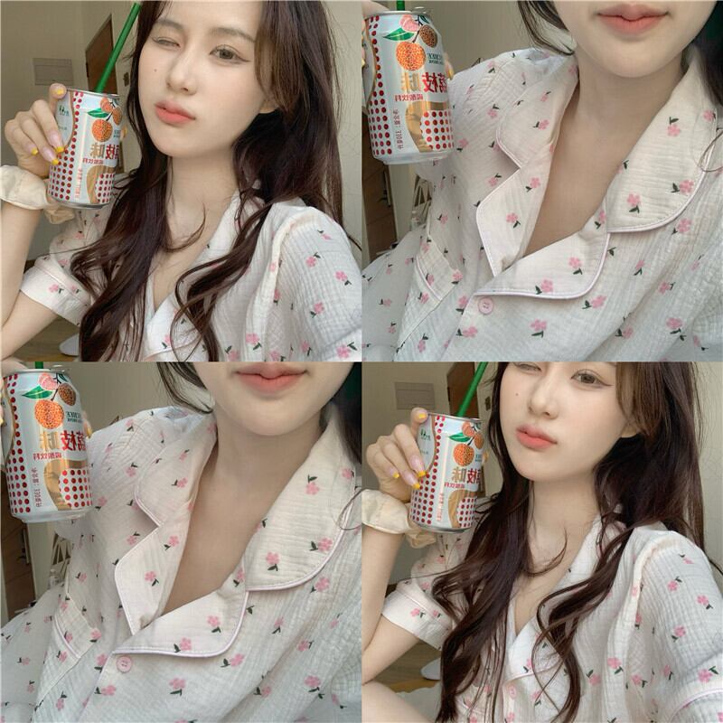 Sweet floral short-sleeved pajamas women's summer two-piece set 2022 new style can be worn outside ese shorts home service suit 大人ガーリー スウィート キュート カジュアル サマー 夏物 ショーツ ブルマー 花柄 0921924456143595