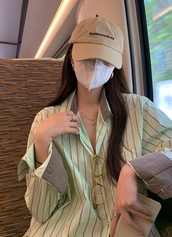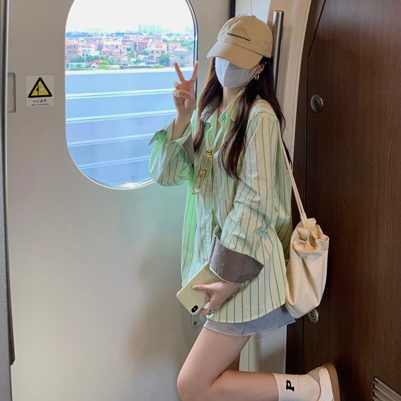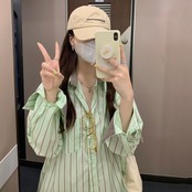 Striped sunscreen long-sleeved shirt women's design sense niche summer 2022 new chic loose mid-length top ロング サマー 夏物 ストライプ 092192969264761