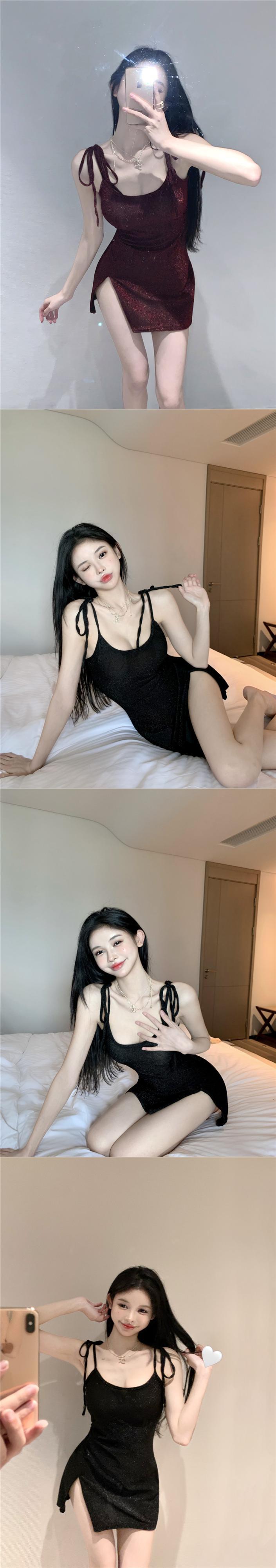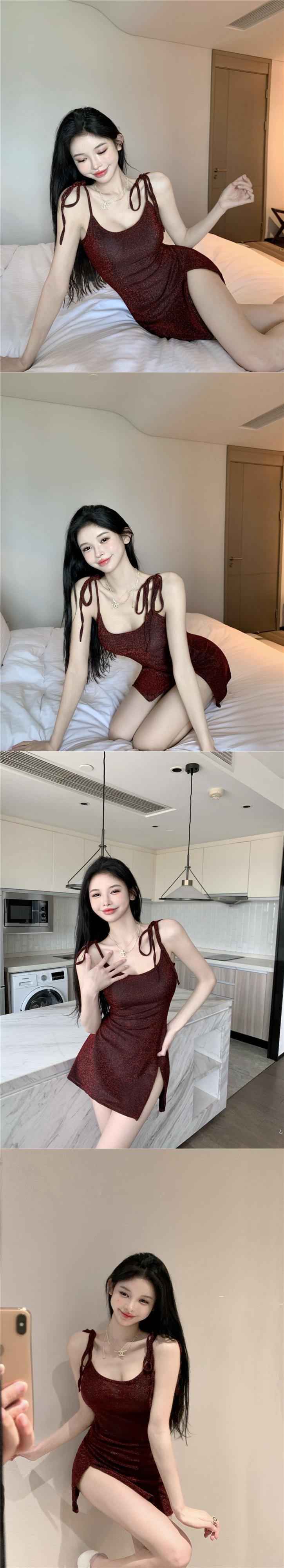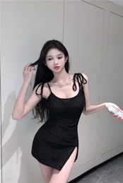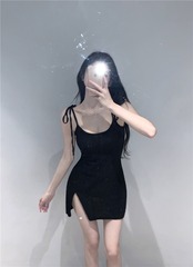 Pure desire wind thin flash suspender dress female summer 2022 new waist and thin split bag hip skirt trendy サマー 夏物 スカート 0921960802075678