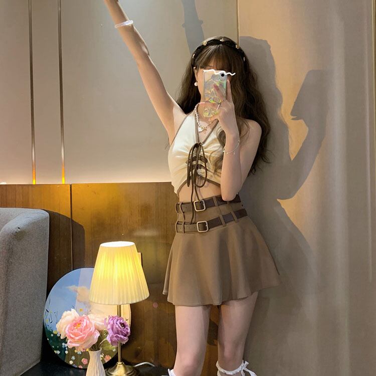 Hot hit color straps halter vest women wear summer 2022 new temperament off-the-shoulder shirts short tops trendy ショート シャツ サマー 夏物 0921994192955262