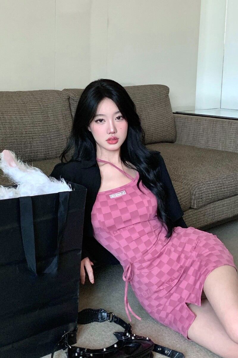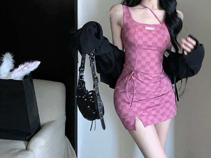 sense chic checkerboard vest dress female summer 2022 new straps waist bag hip skirt サマー 夏物 スカート 0921947107249749