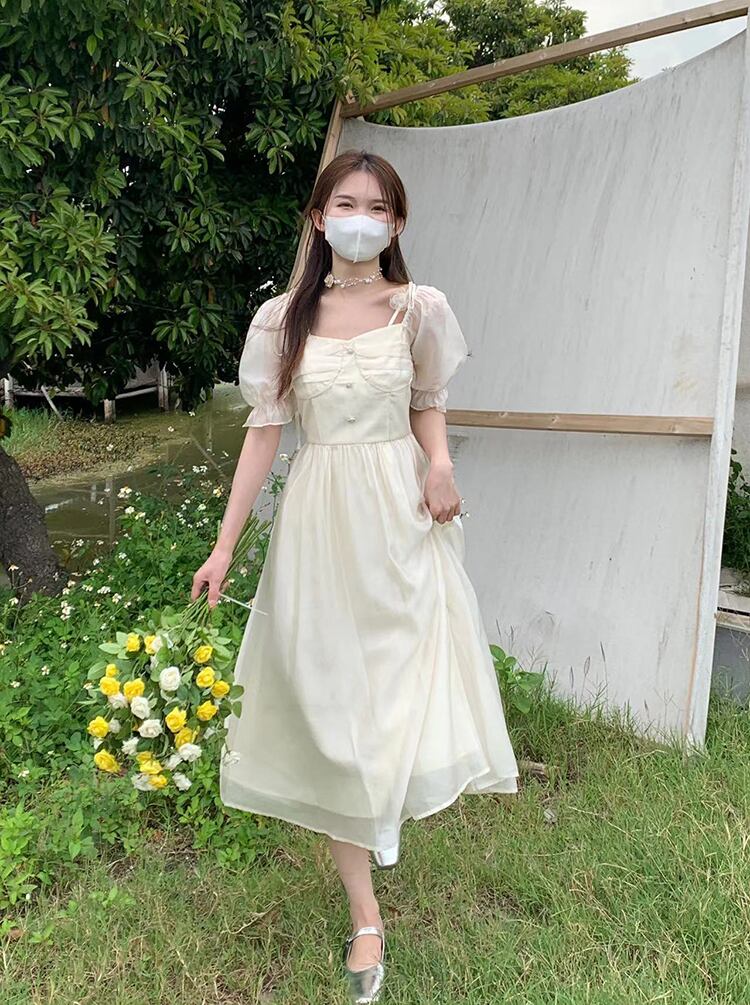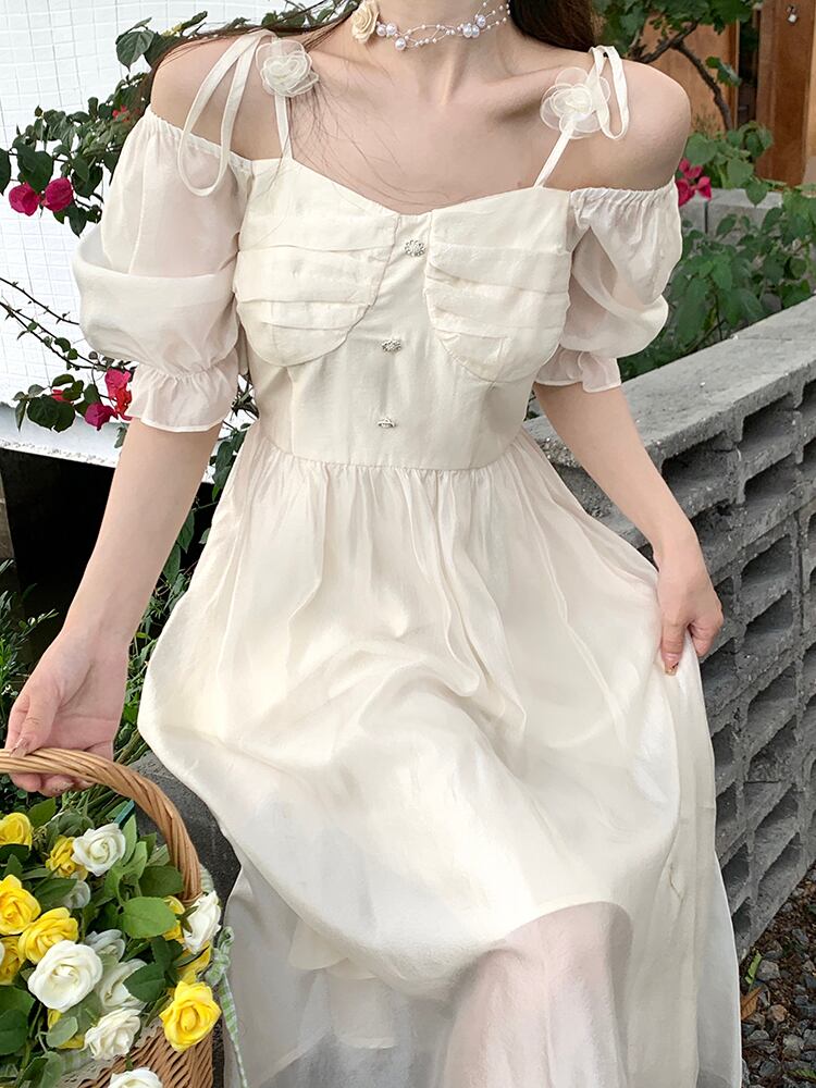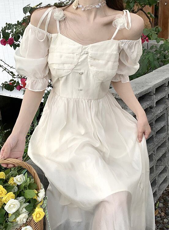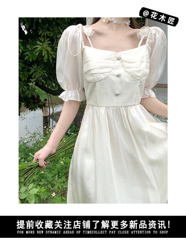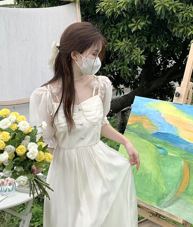 French fairy three-dimensional flower suspender dress female summer 2022 new waist mid-length temperament skirt trendy サマー 夏物 スカート フラワーデザイン 0921972157454054