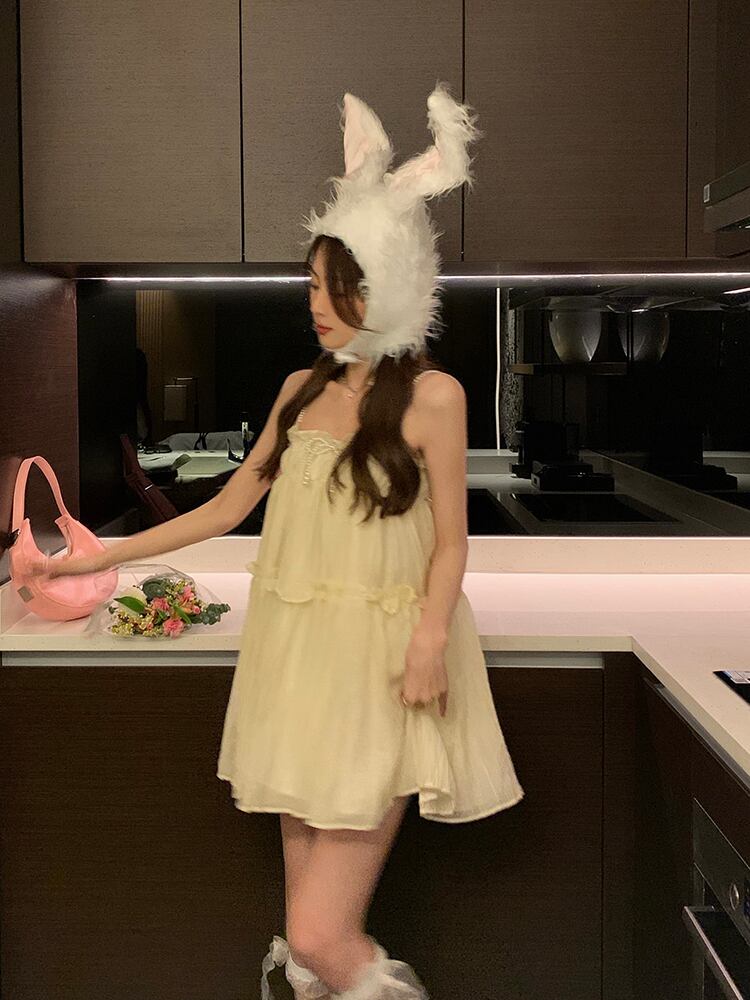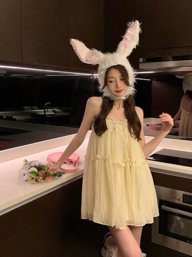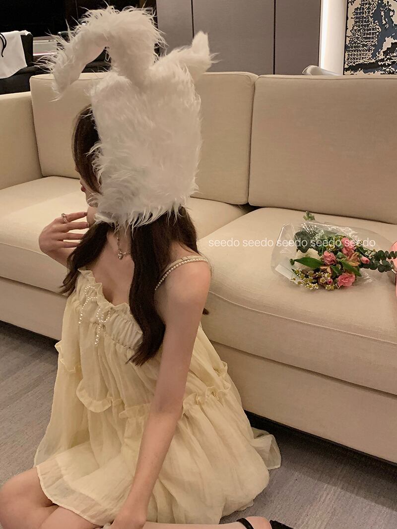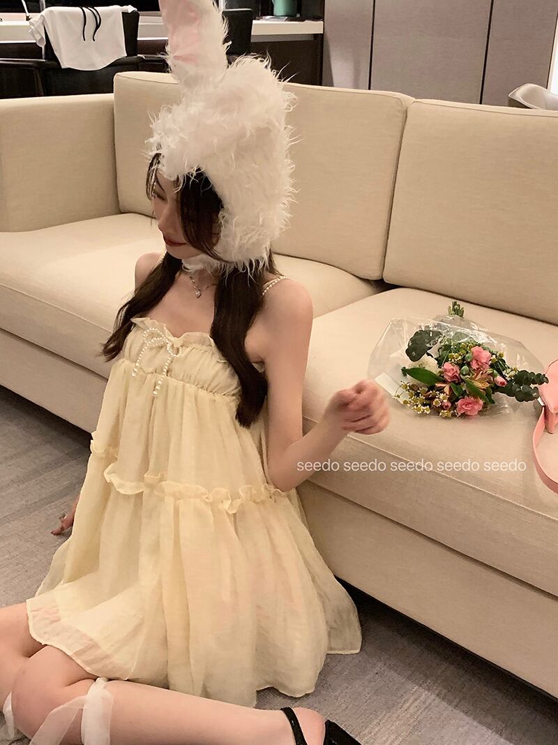 French mesh pearl suspender dress women's summer 2022 new sweet and spicy fungus edge loose tutu skirt 大人ガーリー スウィート キュート カジュアル サマー 夏物 メッシュ スカート パニエ ペチコート パール 真珠 09219503490411