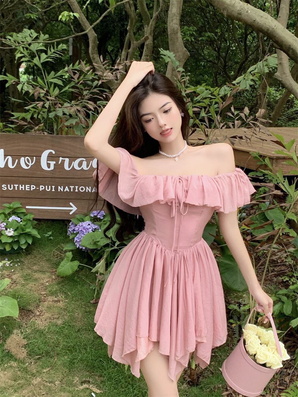 Pure desire wind fairy pink one-shoulder dress female summer 2022 new design sense waist pleated tutu skirt ピンク プリーツ サマー 夏物 スカート パニエ ペチコート 0921919908693073