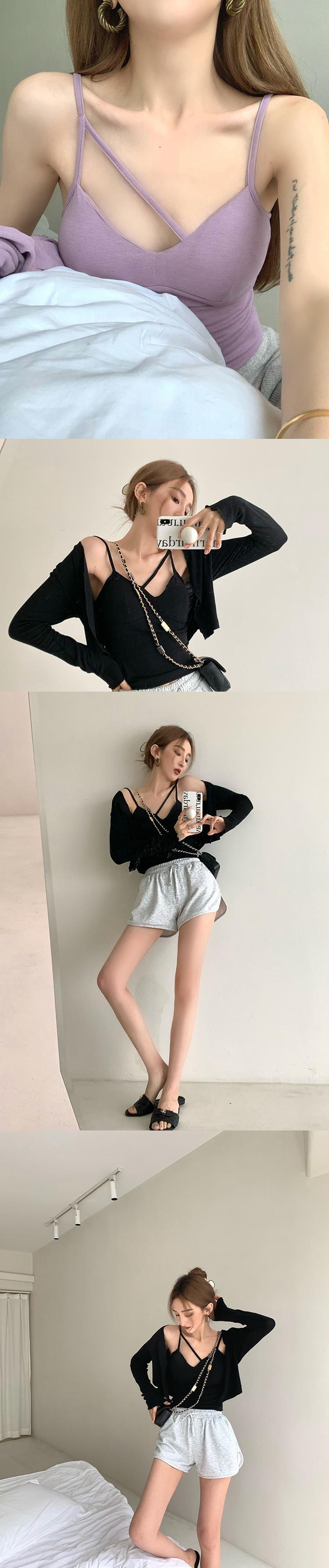 Pure desire purple camisole with chest pad women's inner wear summer 2022 new chic slim fit beautiful back short top ショート サマー 夏物 スリム パープル 0921923811680106