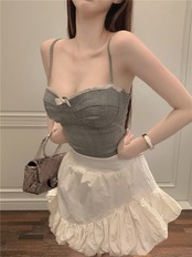 Pure desire wind bow plaid camisole women's inner wear summer 2022 new slim short top outer wear trendy ショート リボン サマー 夏物 スリム 0921946015723032