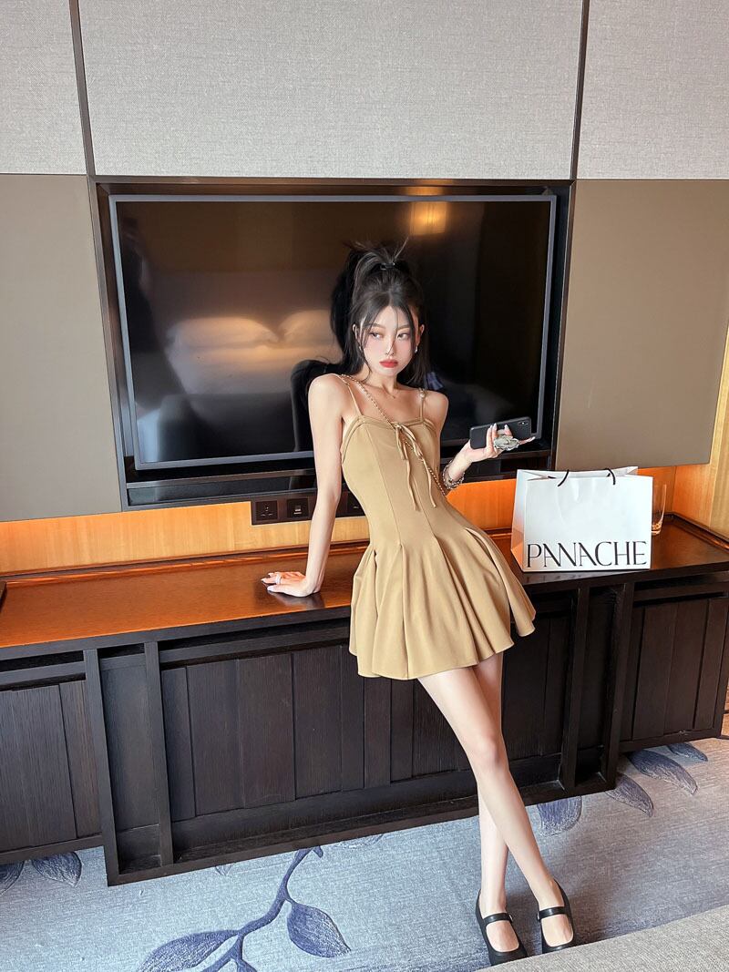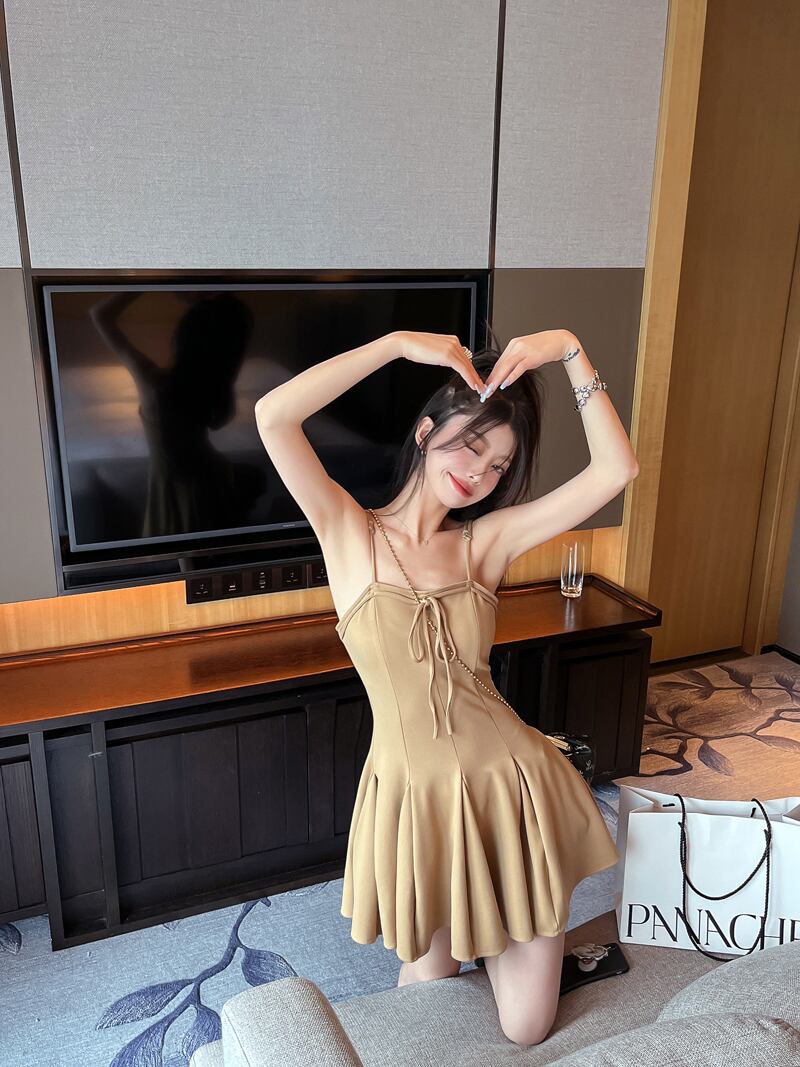 Sweet and spicy suspender dress women's summer 2022 new design sense of lace temperament waist pleated a-line skirt レース 大人ガーリー スウィート キュート カジュアル プリーツ サマー 夏物 スカート Aライン 0921945675245369