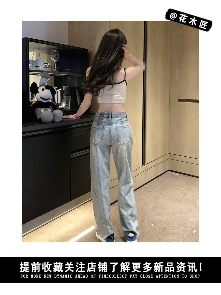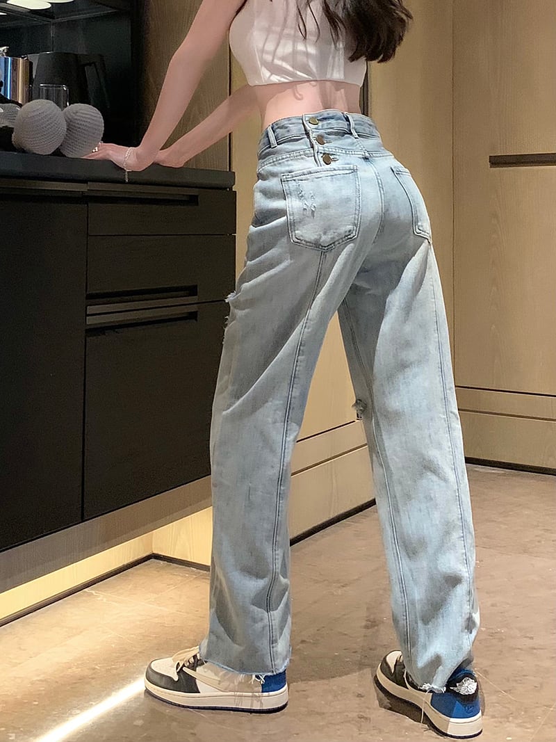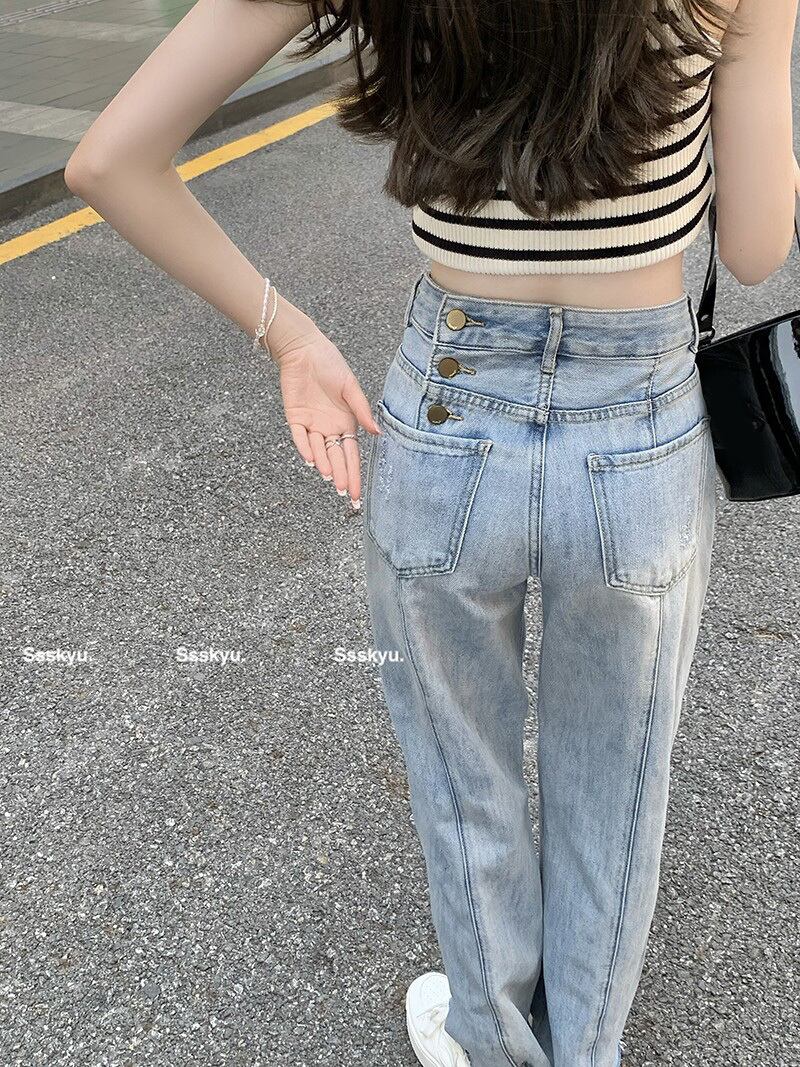 sense fashion washed ripped high waist jeans women's summer 2022 new version slim straight pants ハイウェスト サマー 夏物 スリム 0921979855424524