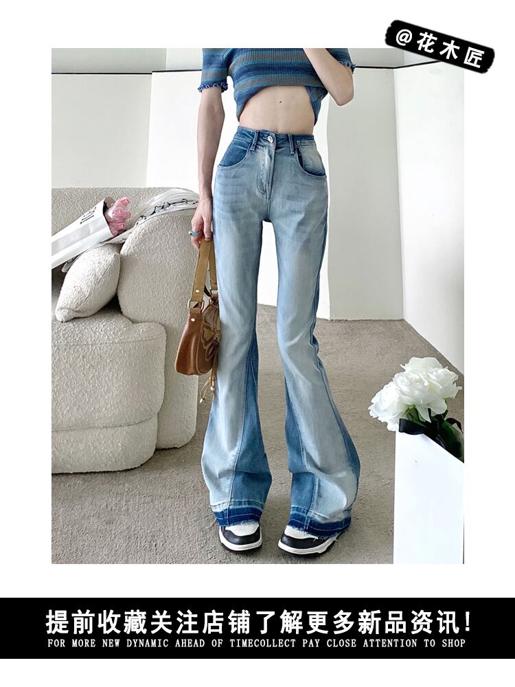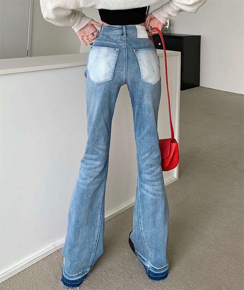 Chic hit color micro-flare jeans women's summer 2022 new net red high waist thin pants high street ins tide ハイウェスト レッド ストリート サマー 夏物 0921915787729774