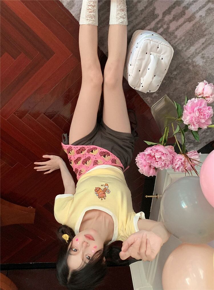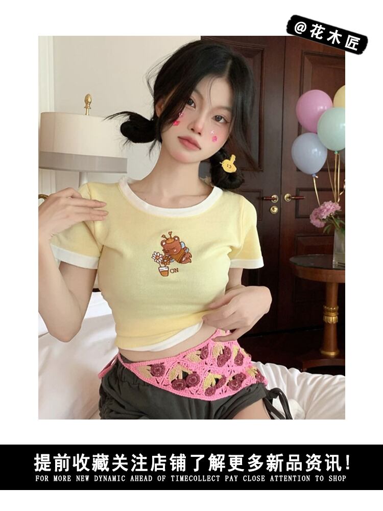sense bear embroidery knitted short-sleeved T-shirt women's summer 2022 new slim color matching short top ins tide ショート 刺繍 サマー 夏物 スリム Tシャツ 0921963962713193