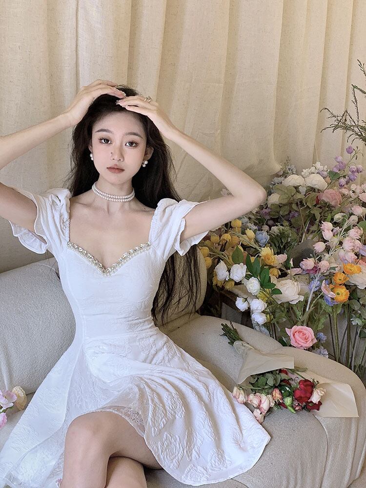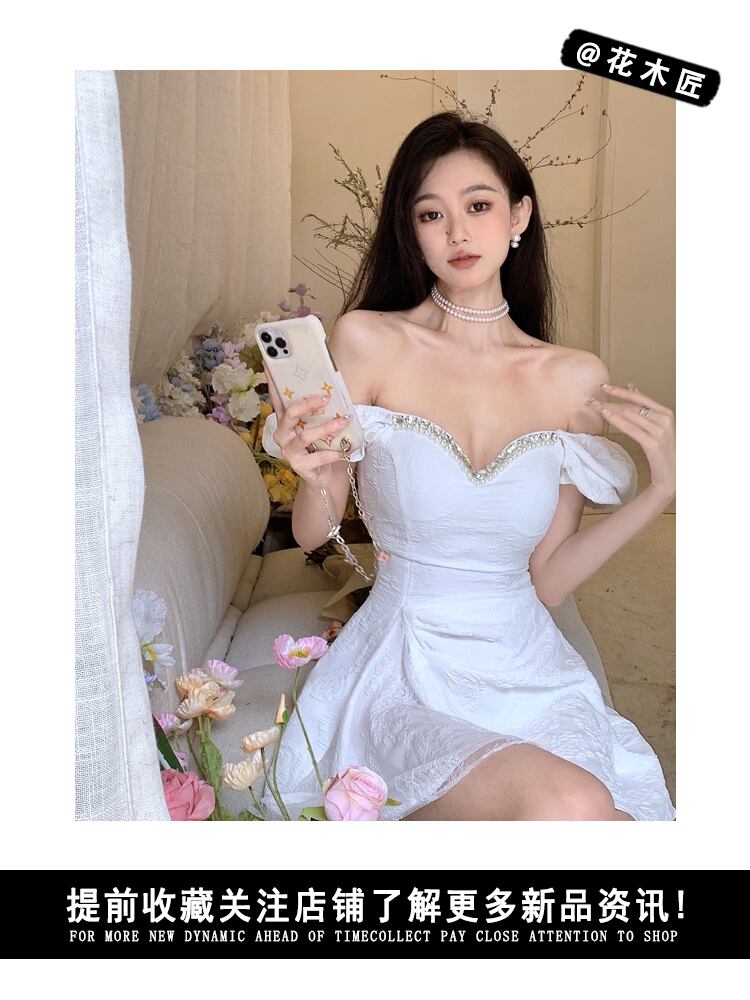 French white dress women's high-end summer 2022 new design sense beaded waist temperament a-line short skirt ショート ホワイト サマー 夏物 スカート Aライン 0921924936951909