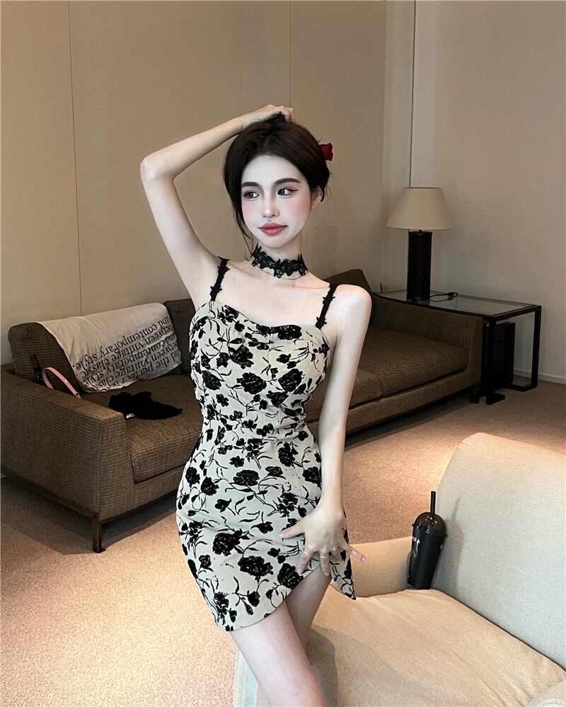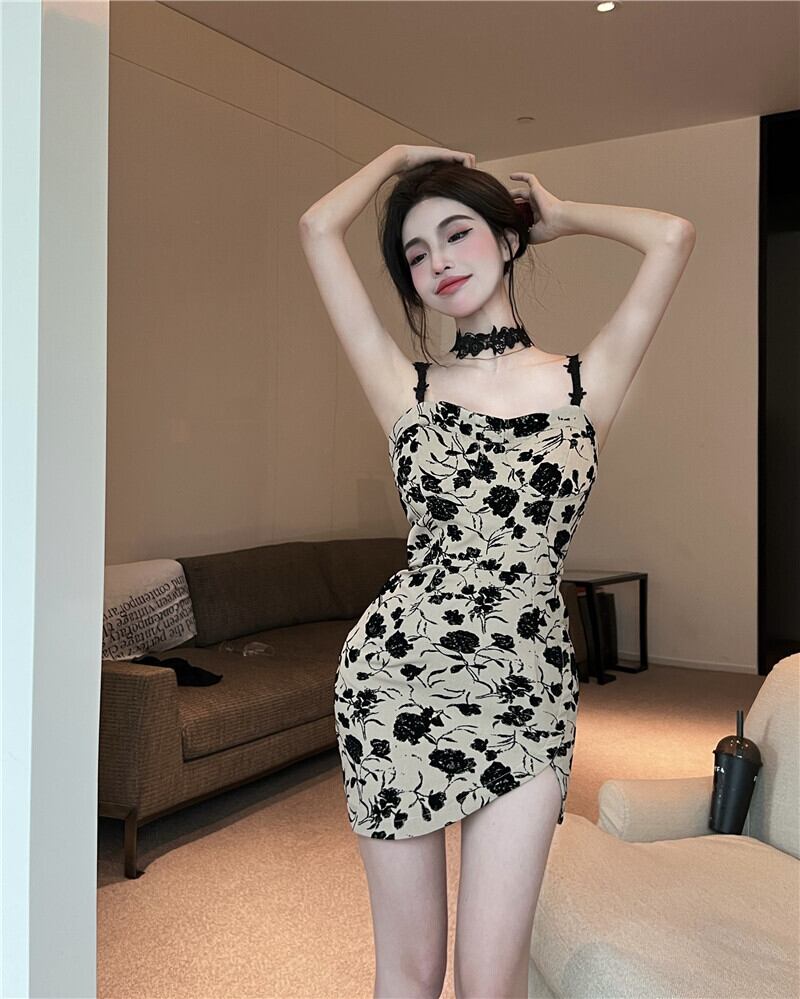 Sexy temperament split rose suspender dress women's summer 2022 new waist and slim bag hip skirt サマー 夏物 スカート スリム 0921943236390237