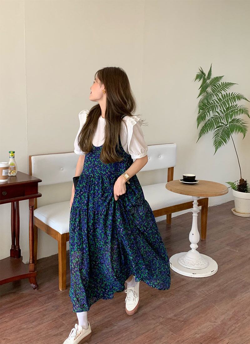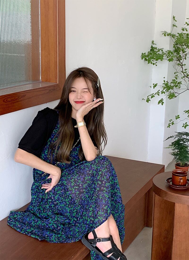 sense niche V-neck suspender floral dress women's mid-length summer 2022 new chic loose A-line skirt サマー 夏物 花柄 スカート Vネック Aライン 0921920378151239