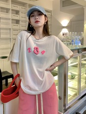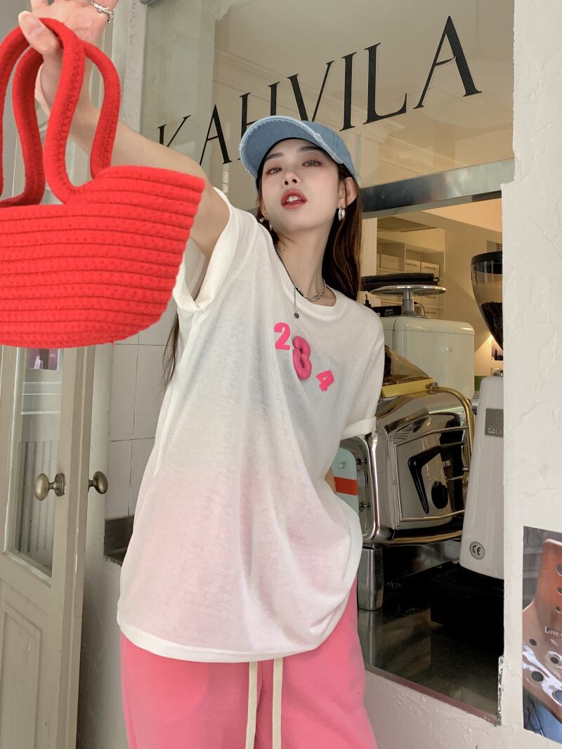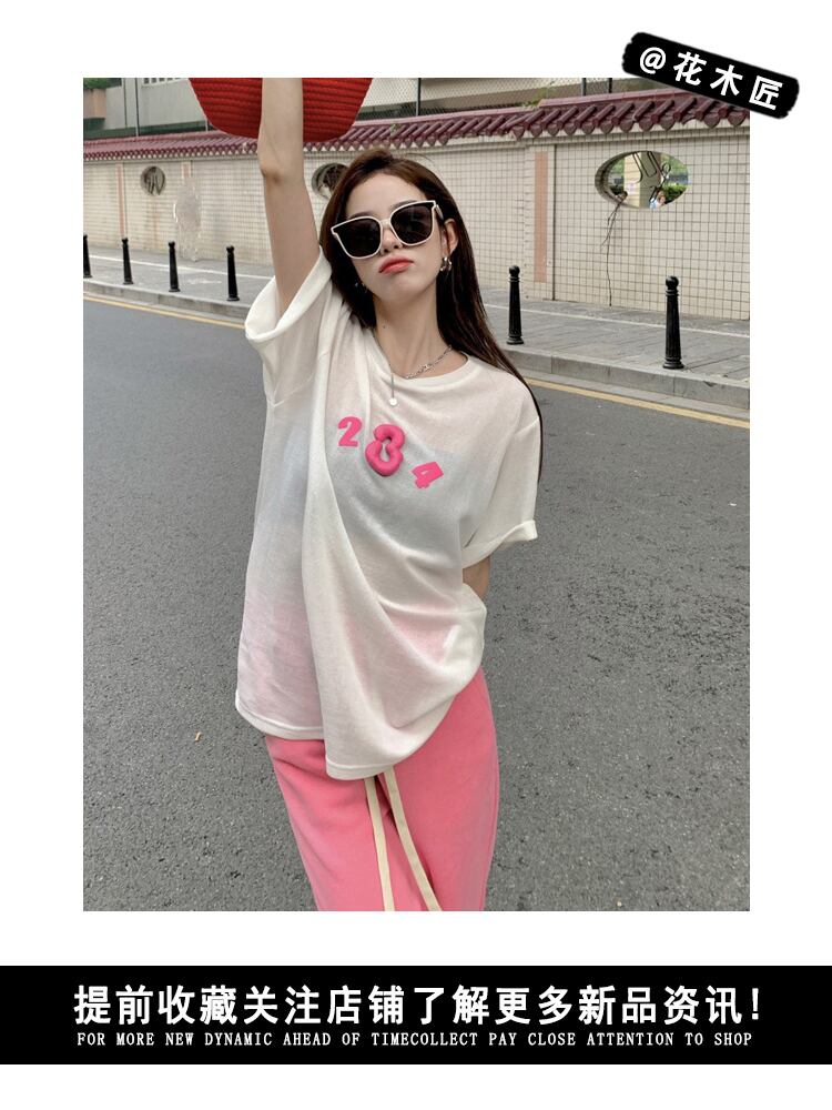 Chic design sense of contrasting color short-sleeved T-shirt women's summer 2022 new version chic Western style wild loose top サマー 夏物 Tシャツ 0921916980765873