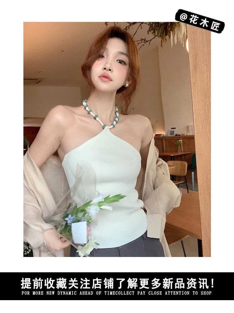 sense halter camisole women's inner wear summer 2022 new beautiful back slim slim short top ショート サマー 夏物 スリム 0921991931037997