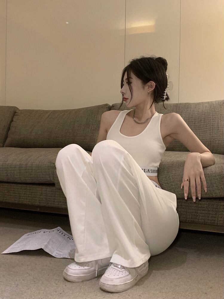 Chic letters white wide-leg pants women's high-end summer 2022 new high-waisted thin loose casual pants ホワイト カジュアル サマー 夏物 0921957567753614