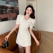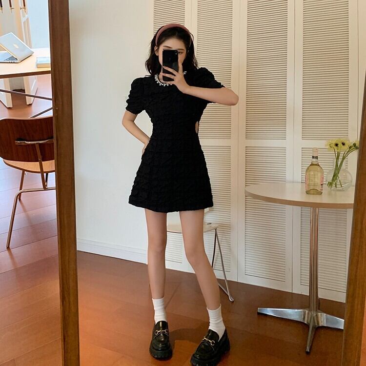 French high-end jacquard dress women's summer 2022 new scheming hollow beading waist slimming a-line skirt サマー 夏物 スカート Aライン 0921993318198115