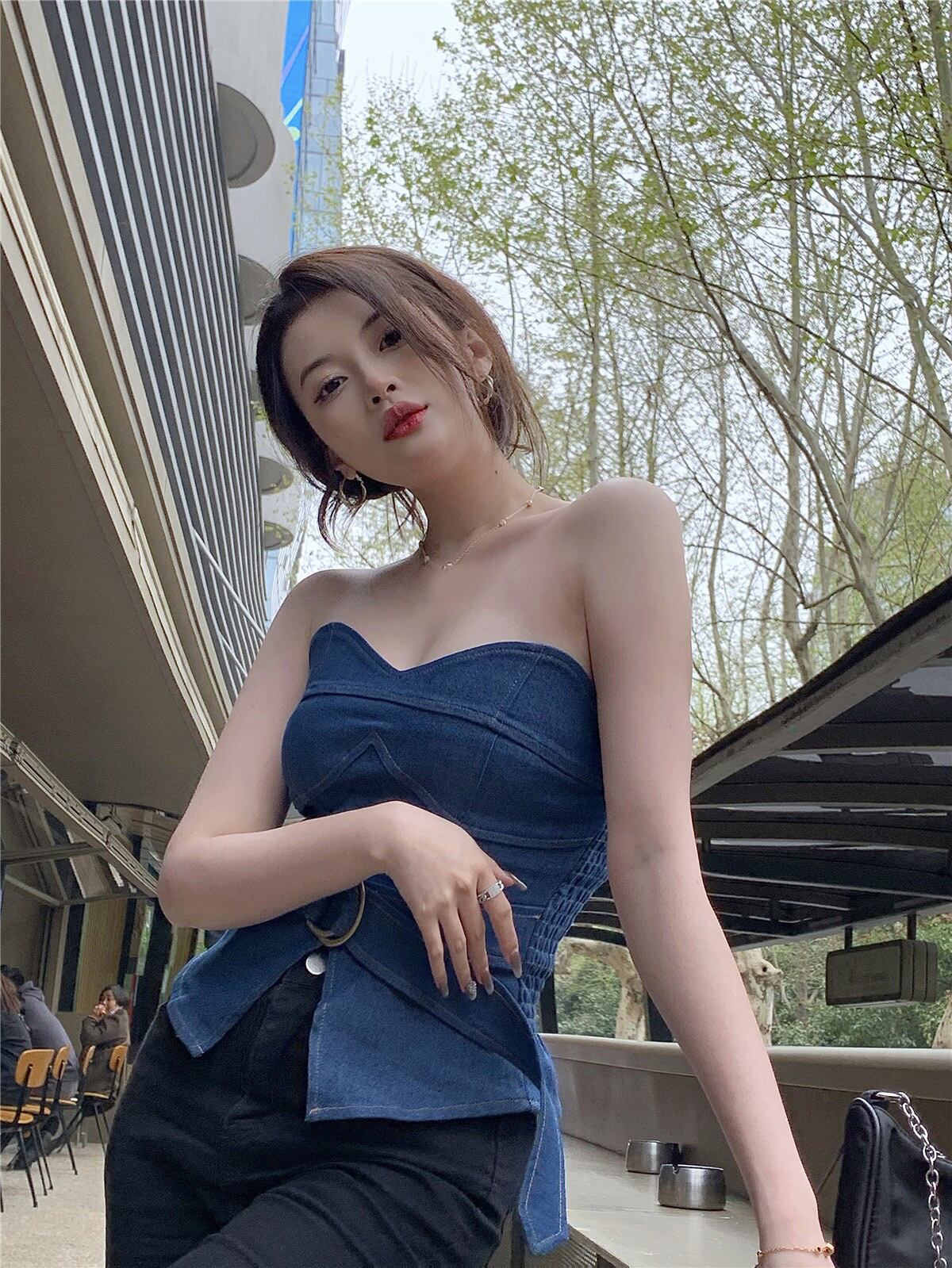 Sexy denim tube top top women's outer wear summer 2022 new straps slim short strapless wrap chest vest ショート サマー 夏物 スリム 0921999212642134