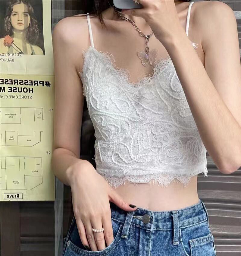 Sexy V-neck lace camisole women's inner wear summer 2022 new slim white short top ショート ホワイト レース サマー 夏物 Vネック スリム 0921964480932029