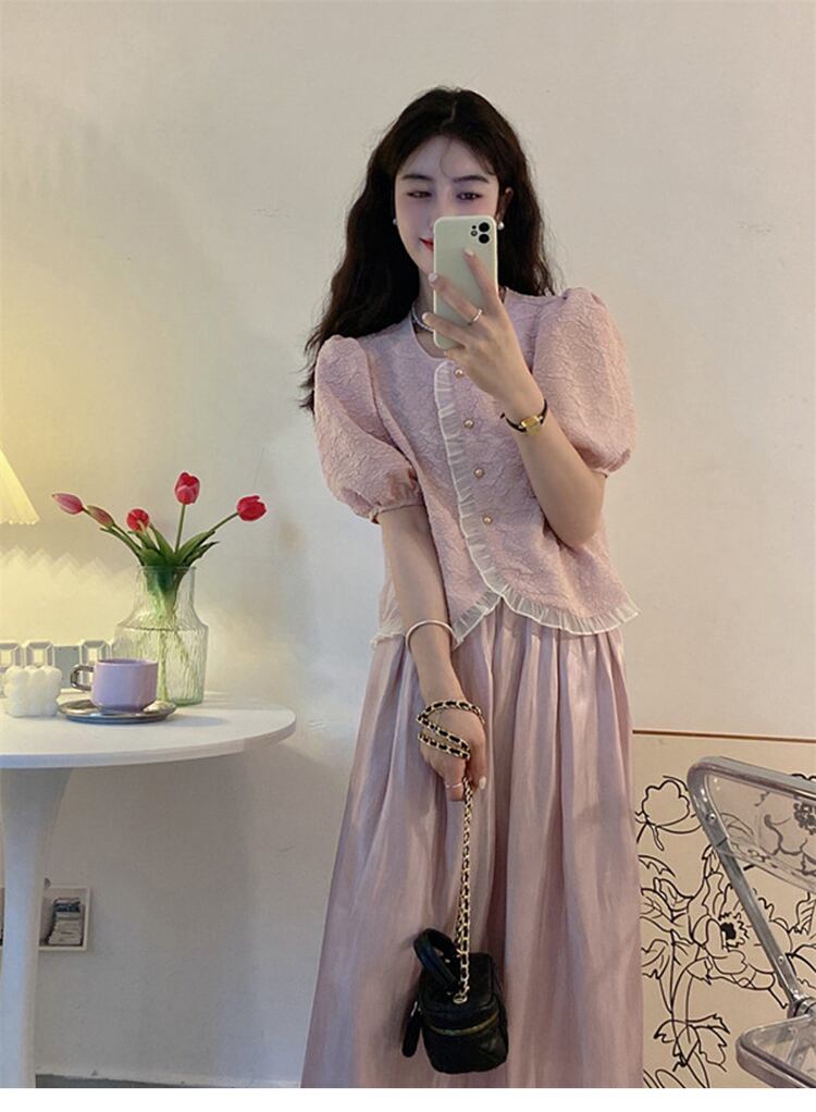 French flower embossed puff sleeve shirt women's summer 2022 new eign style fungus edge design chic top サマー 夏物 フラワーデザイン 0921989737823712
