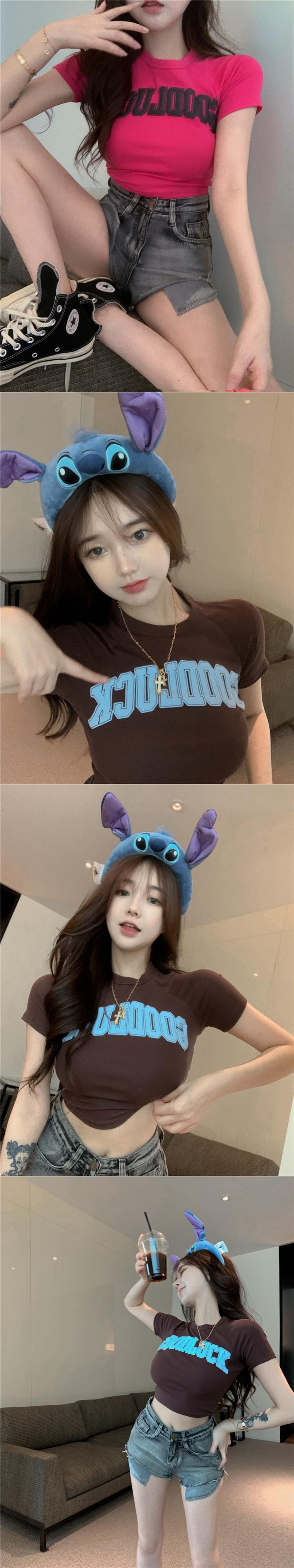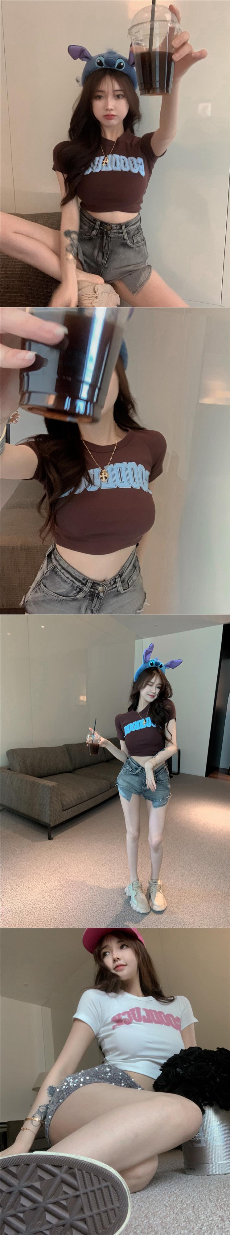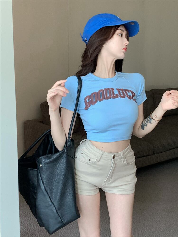 Foam printing blue short-sleeved t-shirt women's summer 2022 new version of the tight-fitting cropped navel short top trendy ショート ブルー サマー 夏物 Tシャツ 0921953235460779