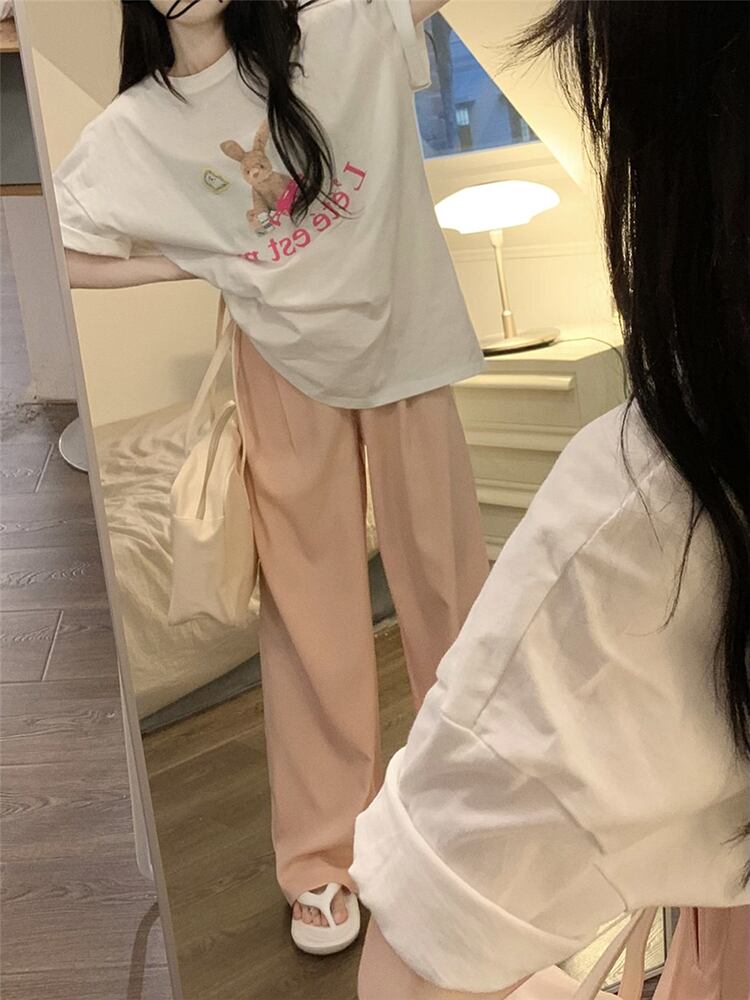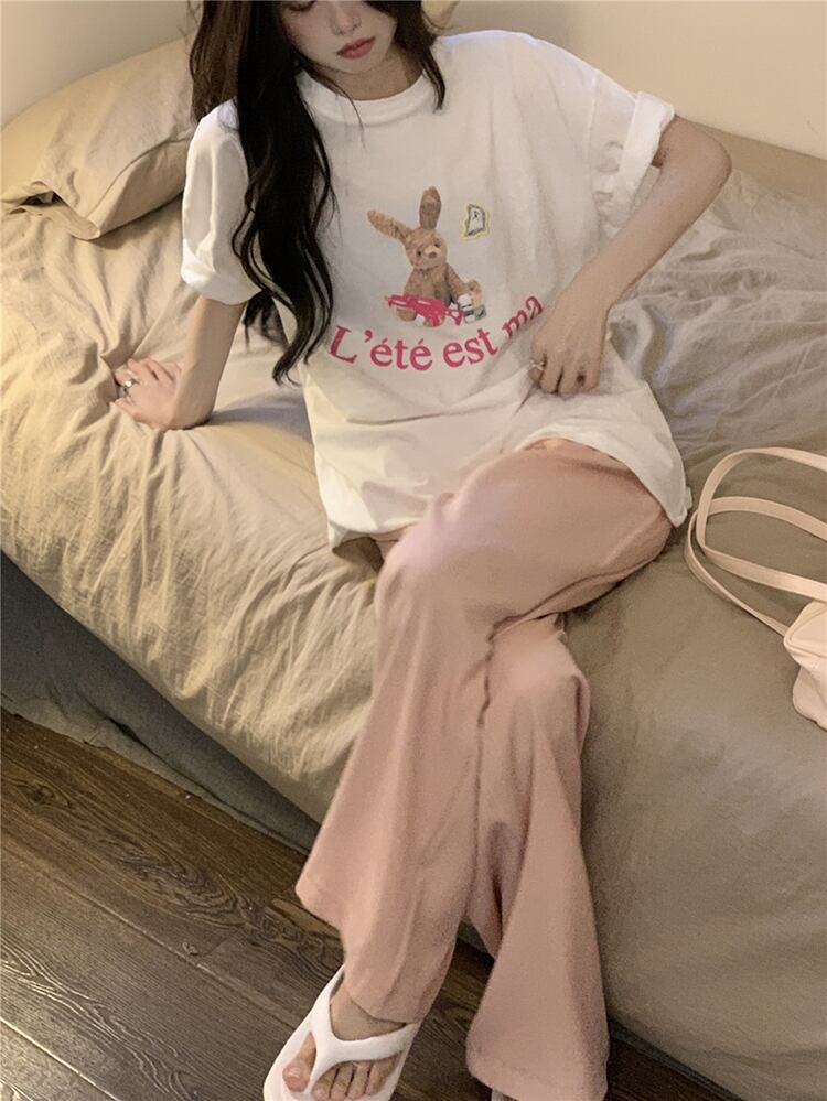 Age-reducing rabbit print short-sleeved t-shirt women's summer 2022 new version of the Western style all-match lazy style white top ホワイト サマー 夏物 Tシャツ 0921939501230452
