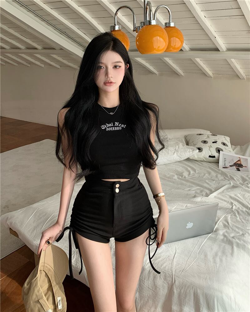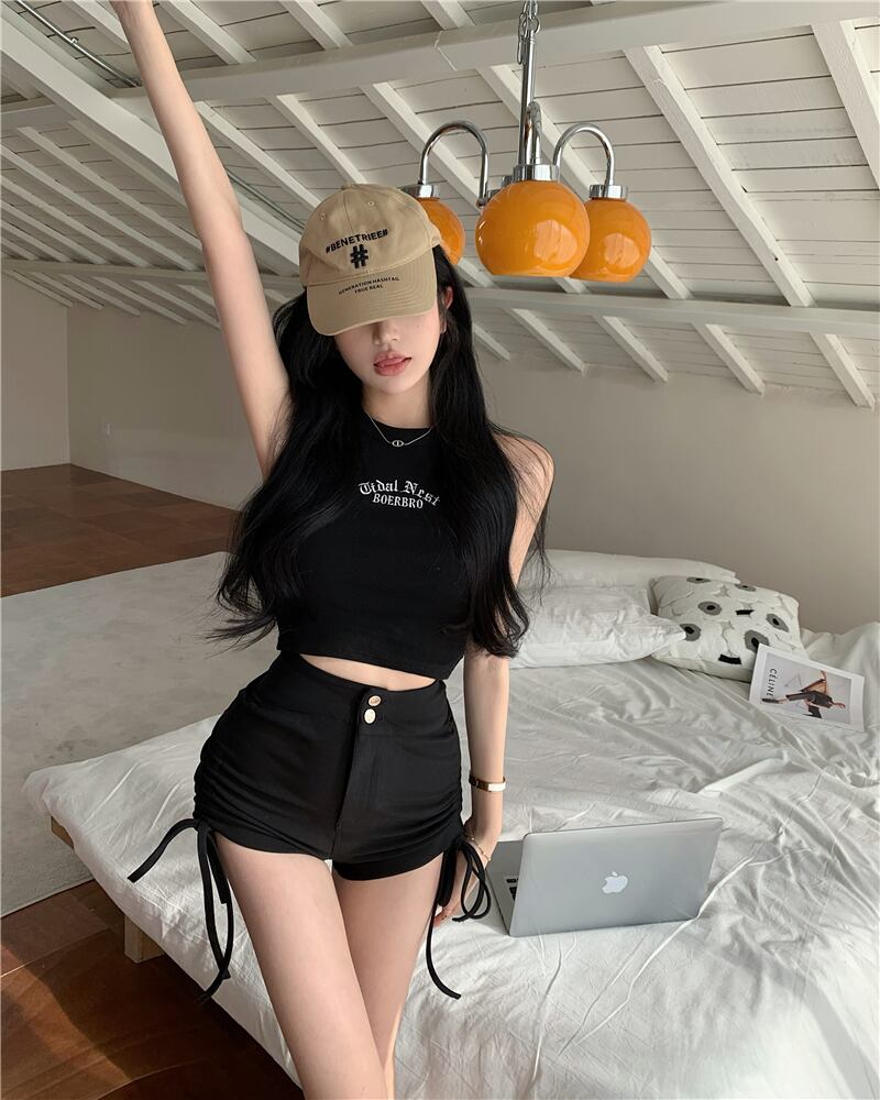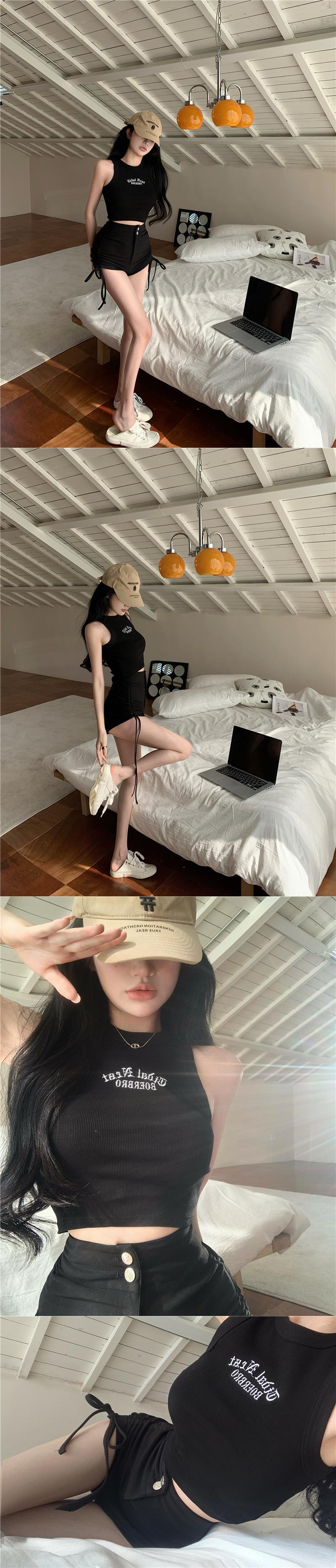 Hot black sports vest women's inner wear summer 2022 new slim and chic letter short tops outer wear trendy ショート ブラック サマー 夏物 スリム 0921919468307622