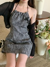 Xiaoxiangfeng bow halter dress female summer 2022 new temperament strapless waist A-line skirt リボン サマー 夏物 スカート Aライン 0921920323700360