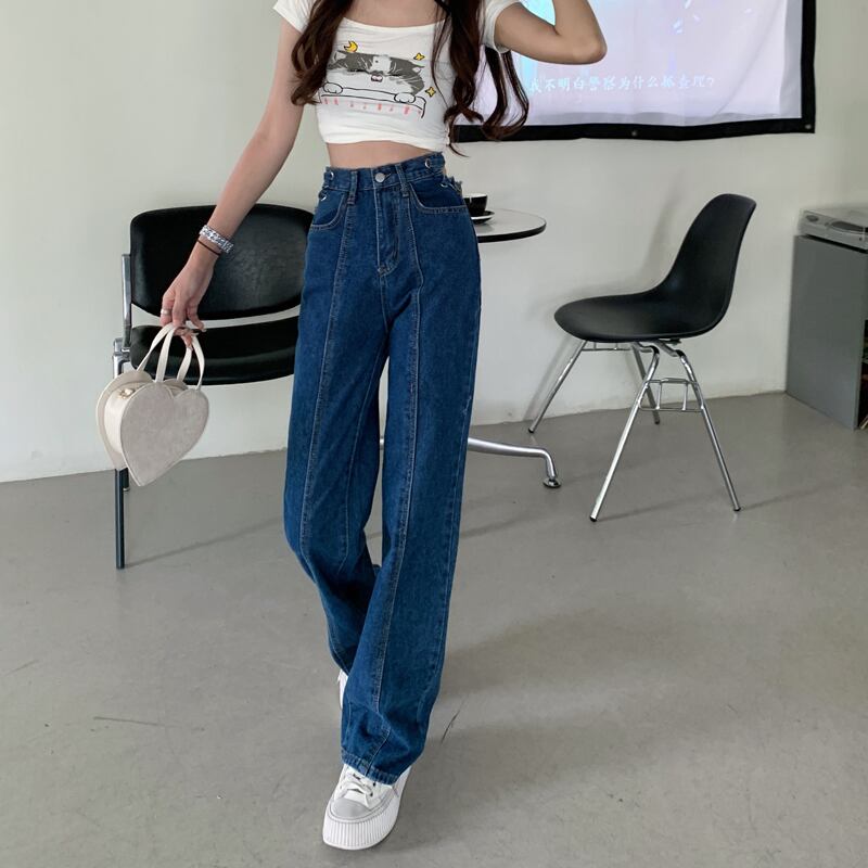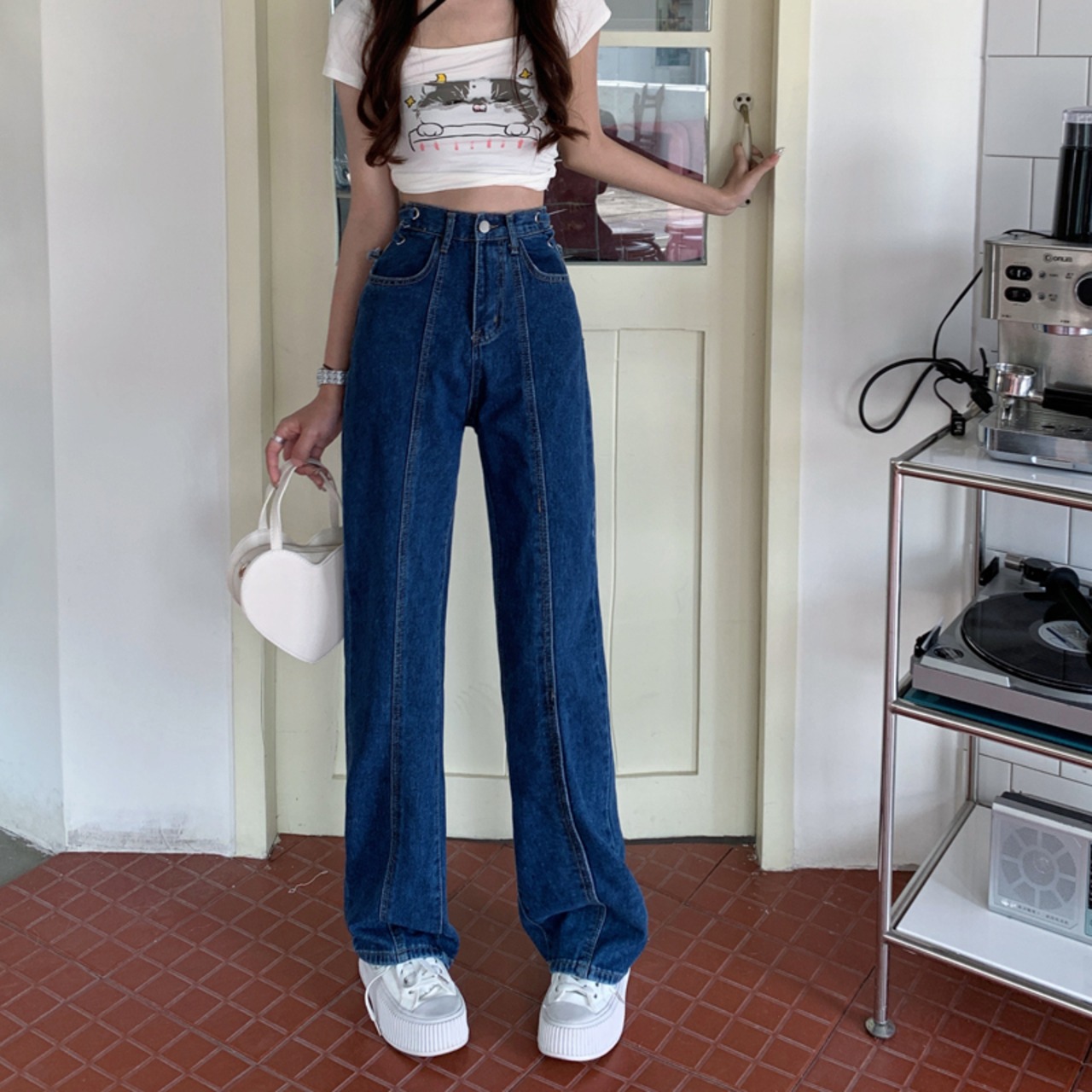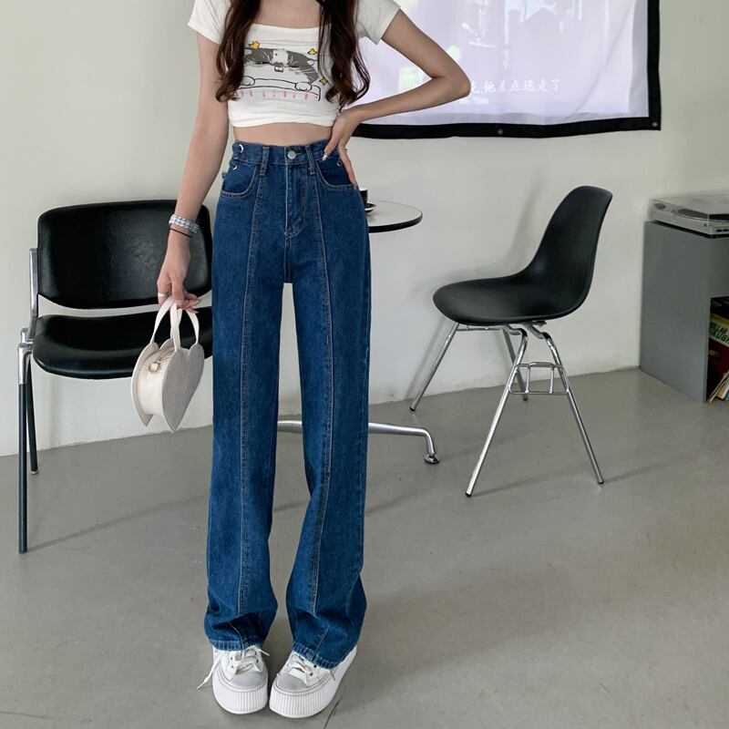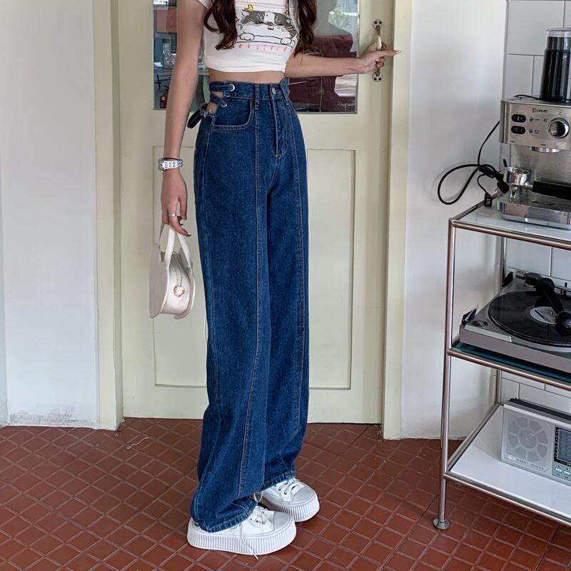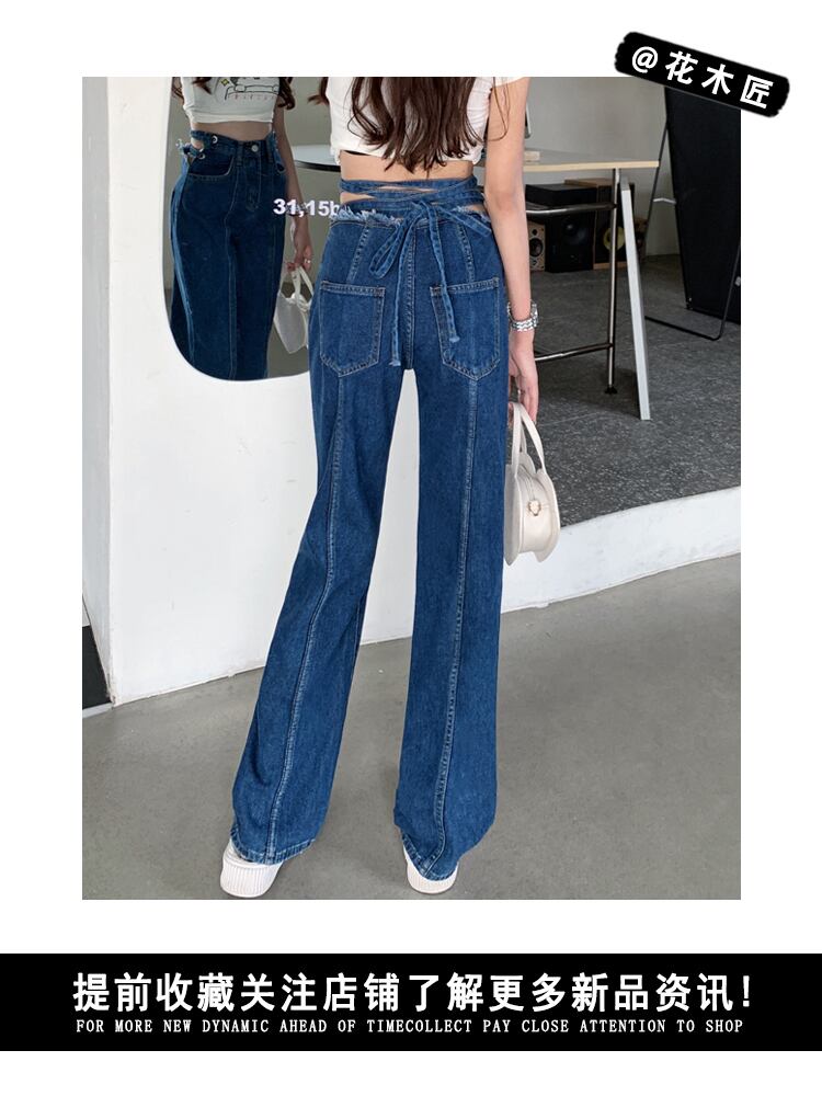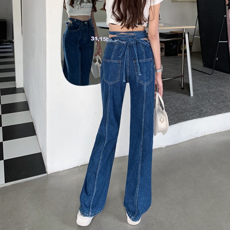 sense niche lace up high waist jeans women's summer 2022 new fashion loose and thin straight pants ハイウェスト レース サマー 夏物 レースアップ 0921943046677260