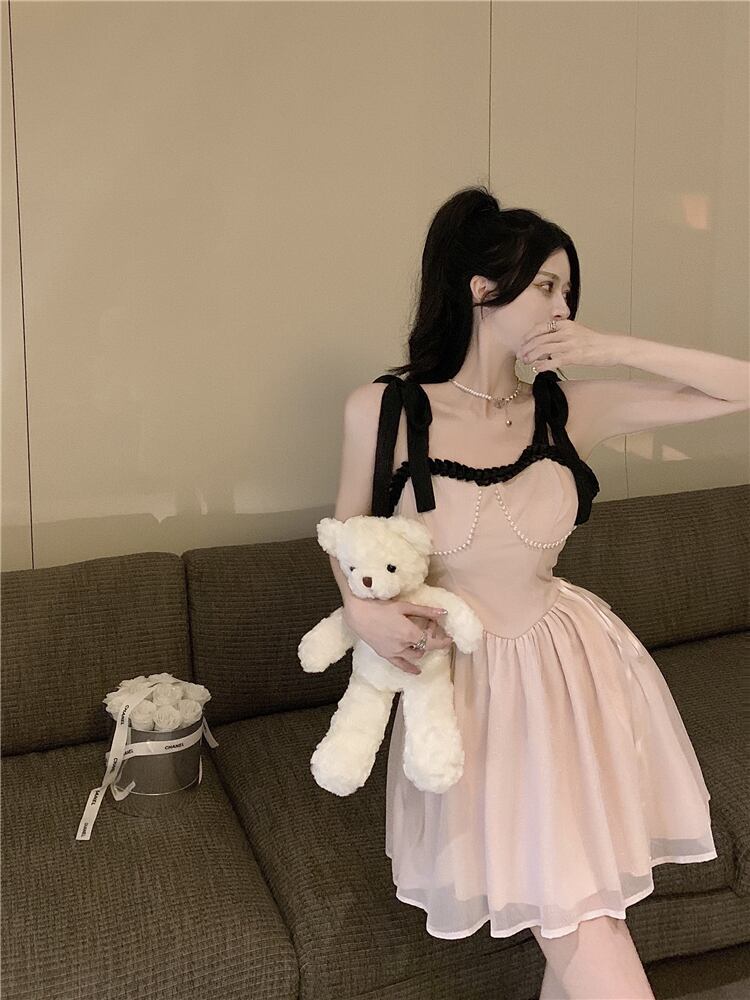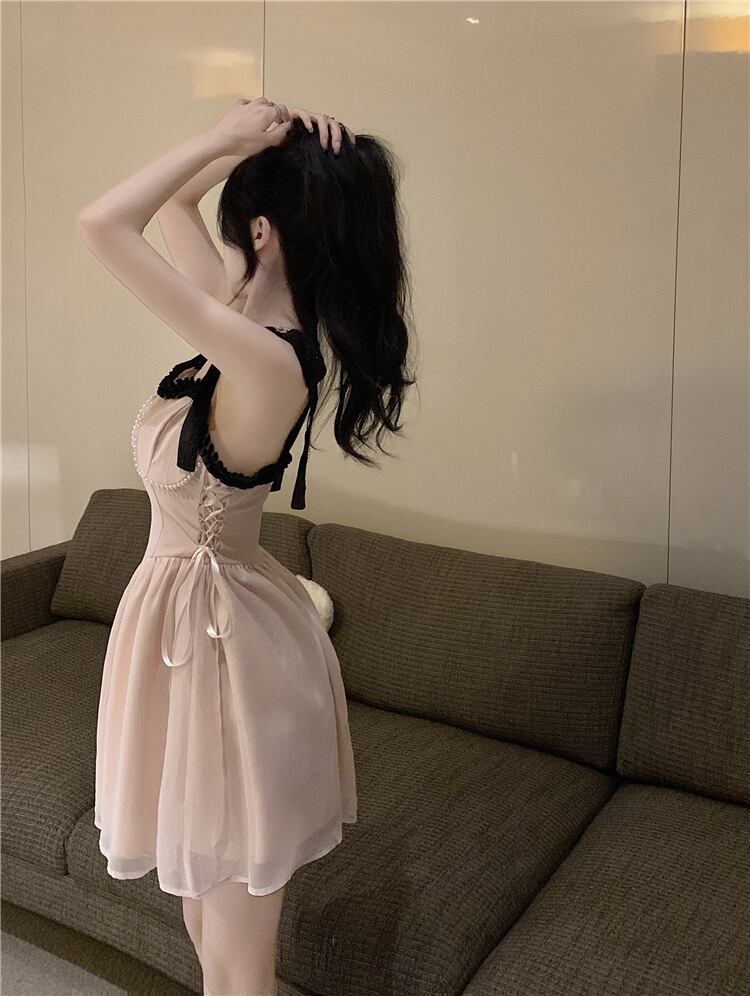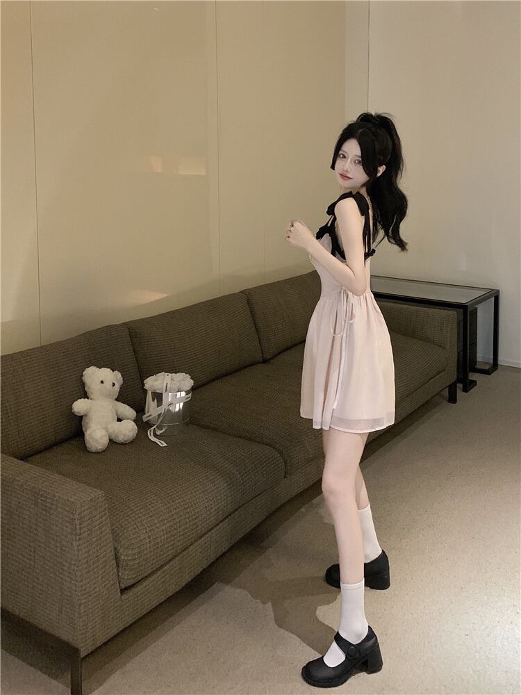 sense fungus edge mesh suspender dress female summer 2022 new sweet little man waist a-line skirt 大人ガーリー スウィート キュート カジュアル サマー 夏物 メッシュ スカート Aライン 0921974821878318