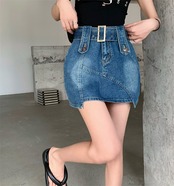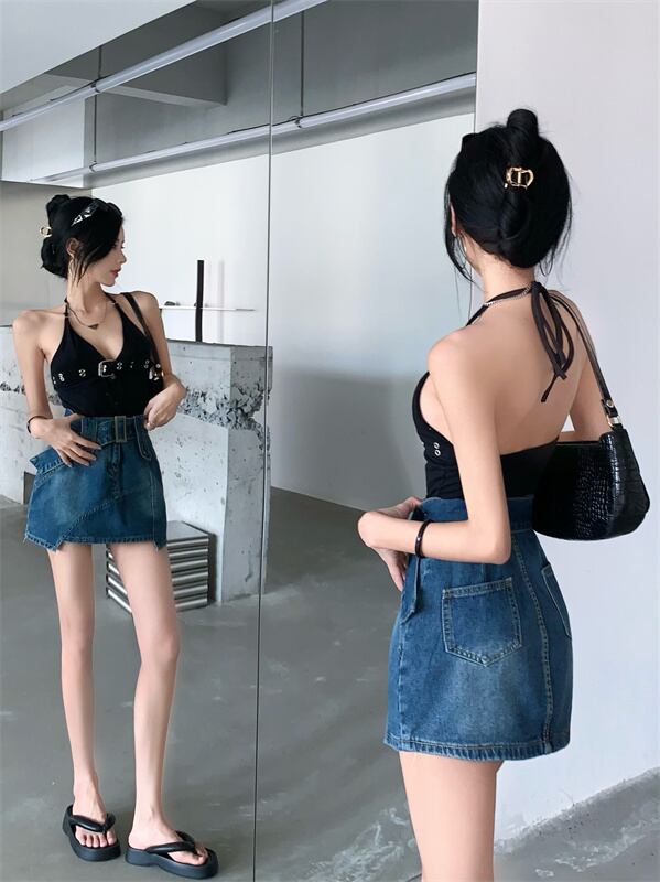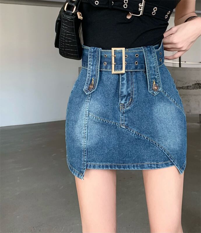 Hot retro irregular denim skirt female summer 2022 new small tall waist thin A-line skirt レトロ サマー 夏物 スカート Aライン 0921915483389191