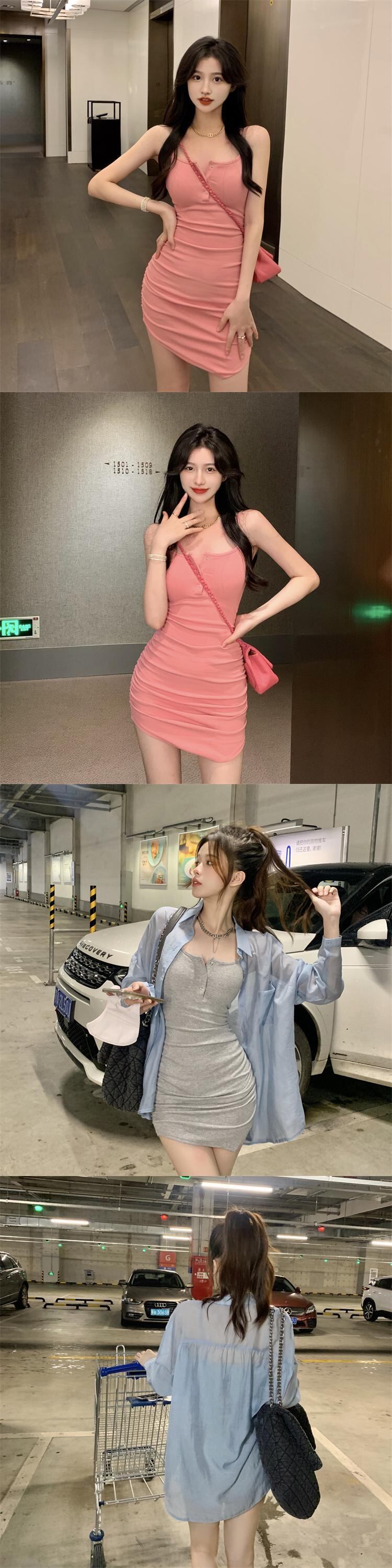Sweet pink suspender dress female summer 2022 new waist slim temperament slim pleated hip skirt ピンク 大人ガーリー スウィート キュート カジュアル プリーツ サマー 夏物 スカート スリム 0921931225188123