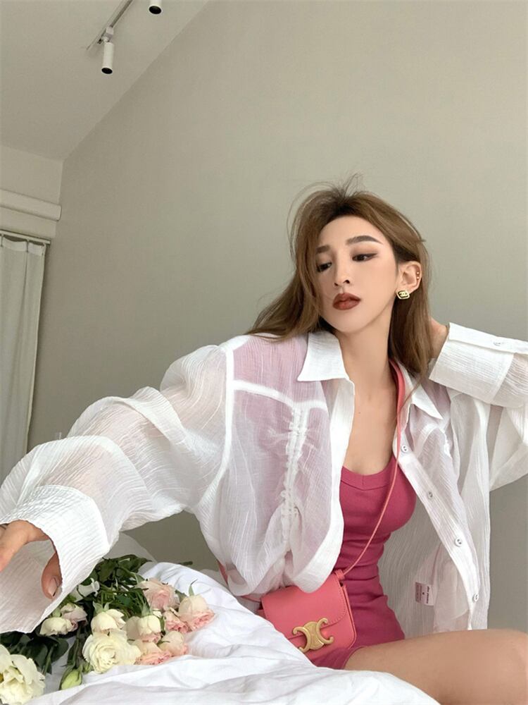 sense niche drawstring white sunscreen shirt women's summer 2022 new loose mid-length long-sleeved top ロング ホワイト サマー 夏物 0921930027532835