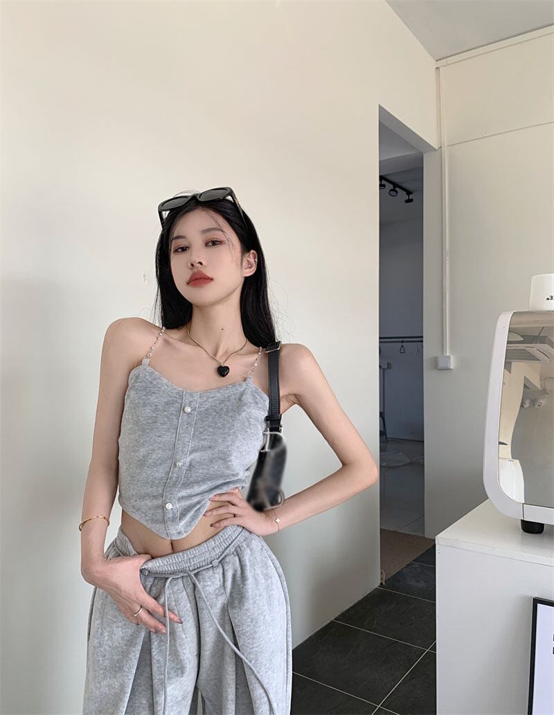 sense gray chain camisole female outer wear summer 2022 new temperament self-cultivation top サマー 夏物 チェーン 0921996868274117