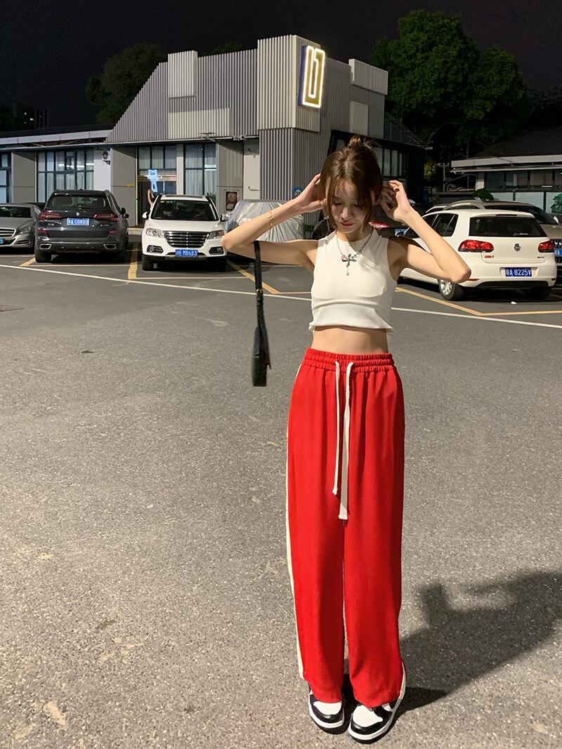Color-blocking drawstring sports pants women's straight-leg loose wide-leg pants summer 2022 new high-waisted slim sagging casual pants カジュアル サマー 夏物 スリム 0921947458652908