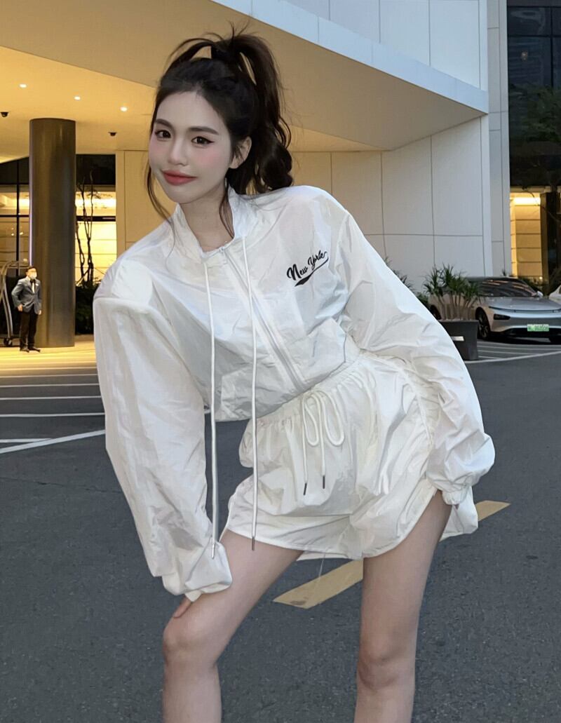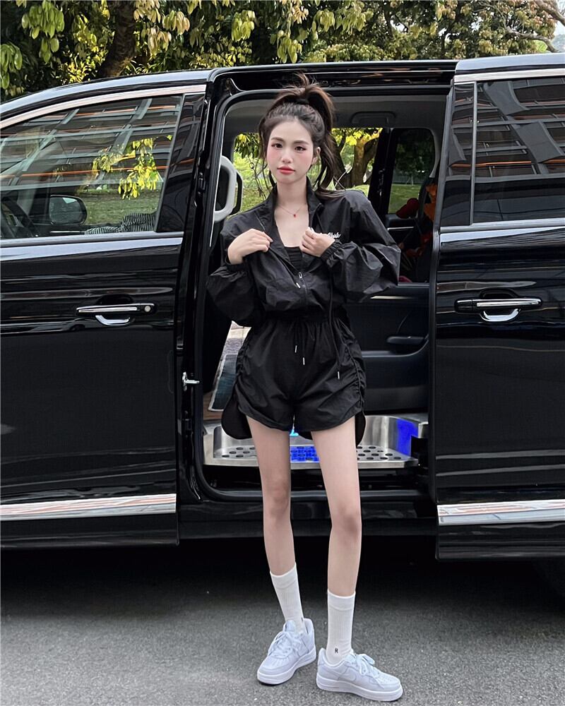 Black long-sleeved sunscreen shirt women's spring 2022 new design niche letter zipper all-match chic top ロング ブラック スプリング 春物 0921965589320423