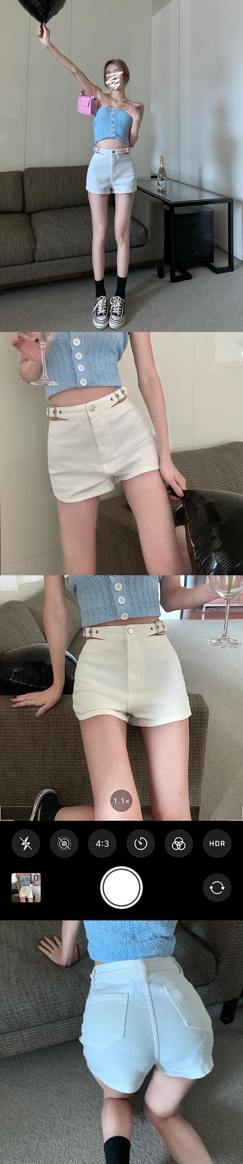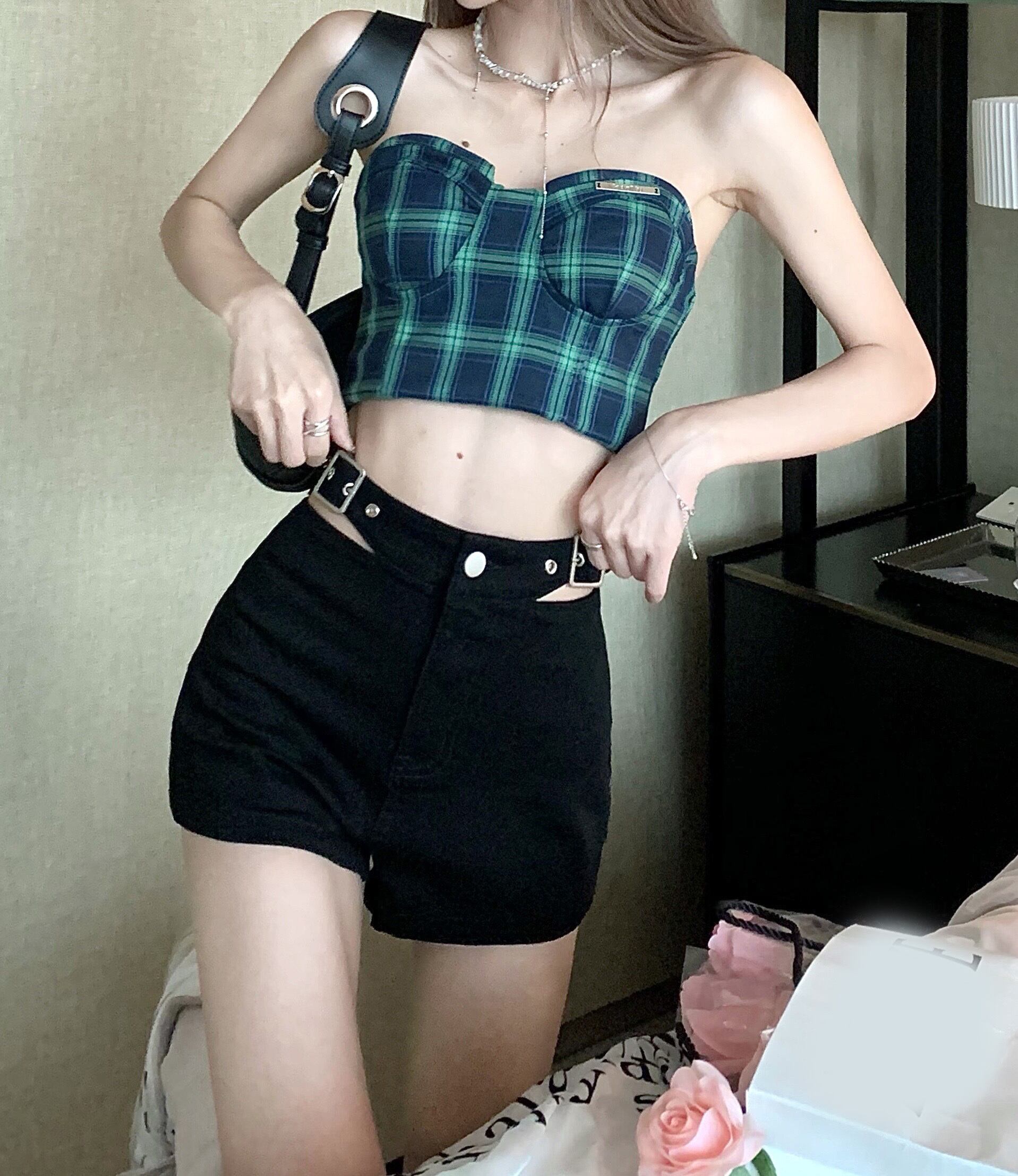 Hot hollow black denim shorts women's summer 2022 new small man slim tall waist and thin straight pants ブラック サマー 夏物 ショーツ ブルマー スリム 0921930525882244