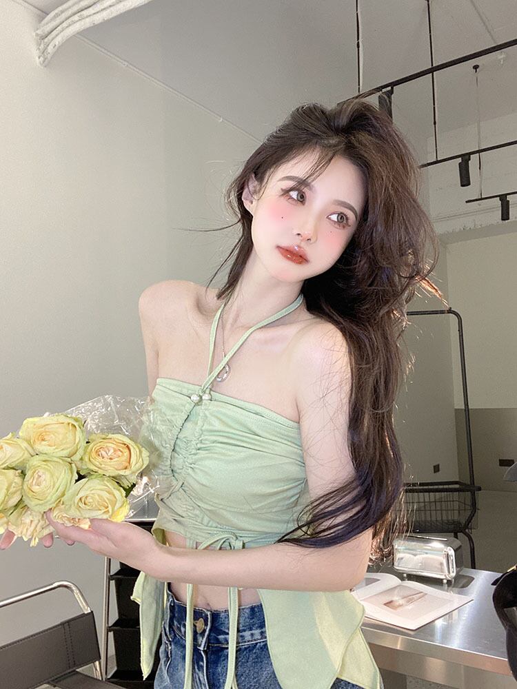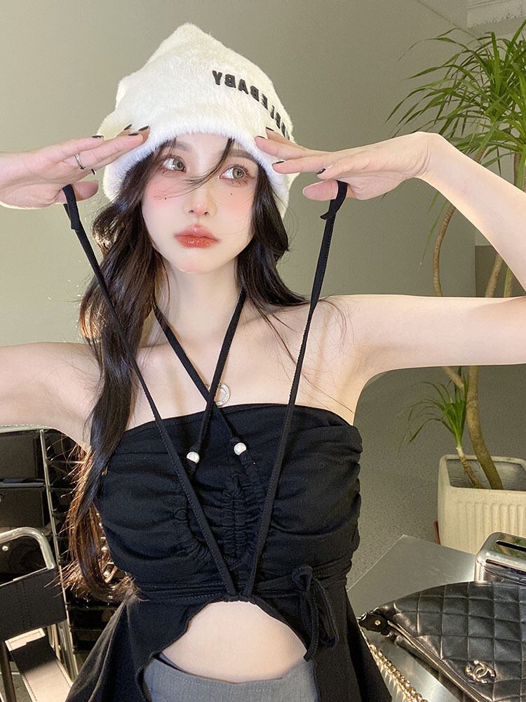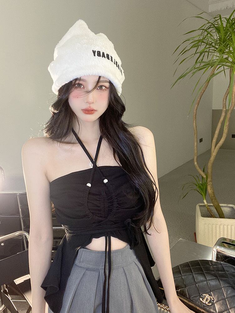 Cross-strap halter neck camisole women's inner wear summer 2022 new pure desire style chic slim short top ショート サマー 夏物 スリム ピュア 092199976201726