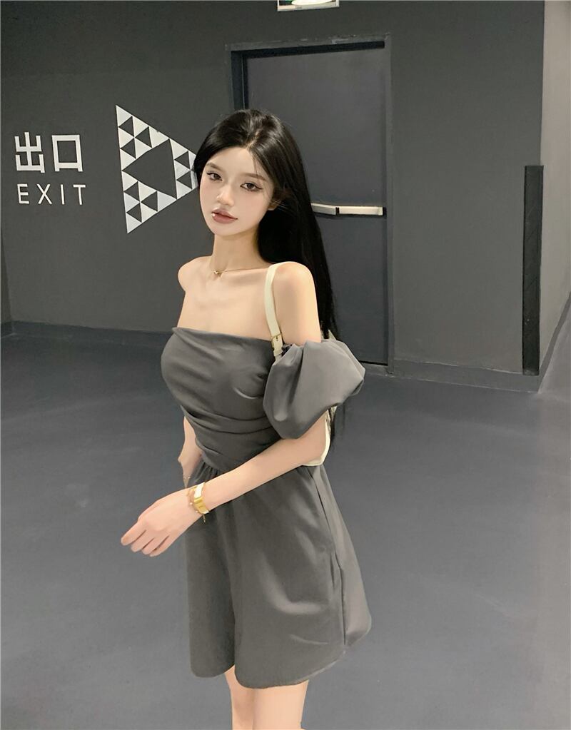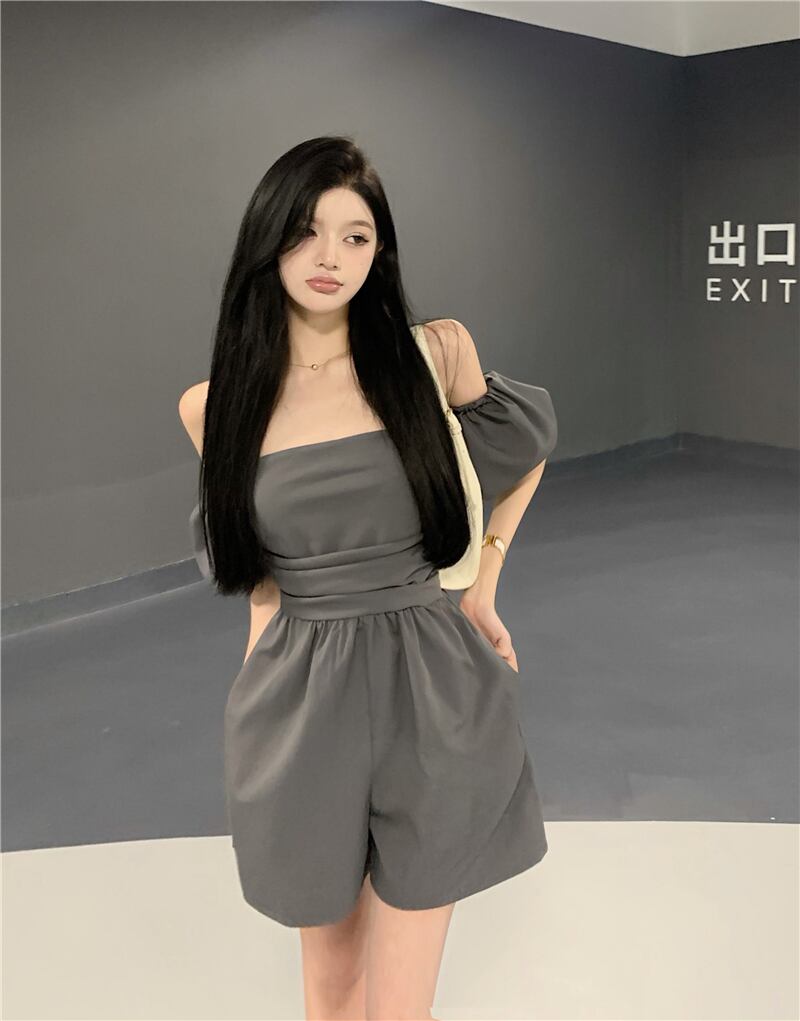 Grey one-shoulder jumpsuit women's summer 2022 new puff sleeve jumpsuit high waist casual wide leg shorts tide ハイウェスト カジュアル サマー 夏物 ショーツ ブルマー ワイドレッグ ワイドパンツ 0921978848989215