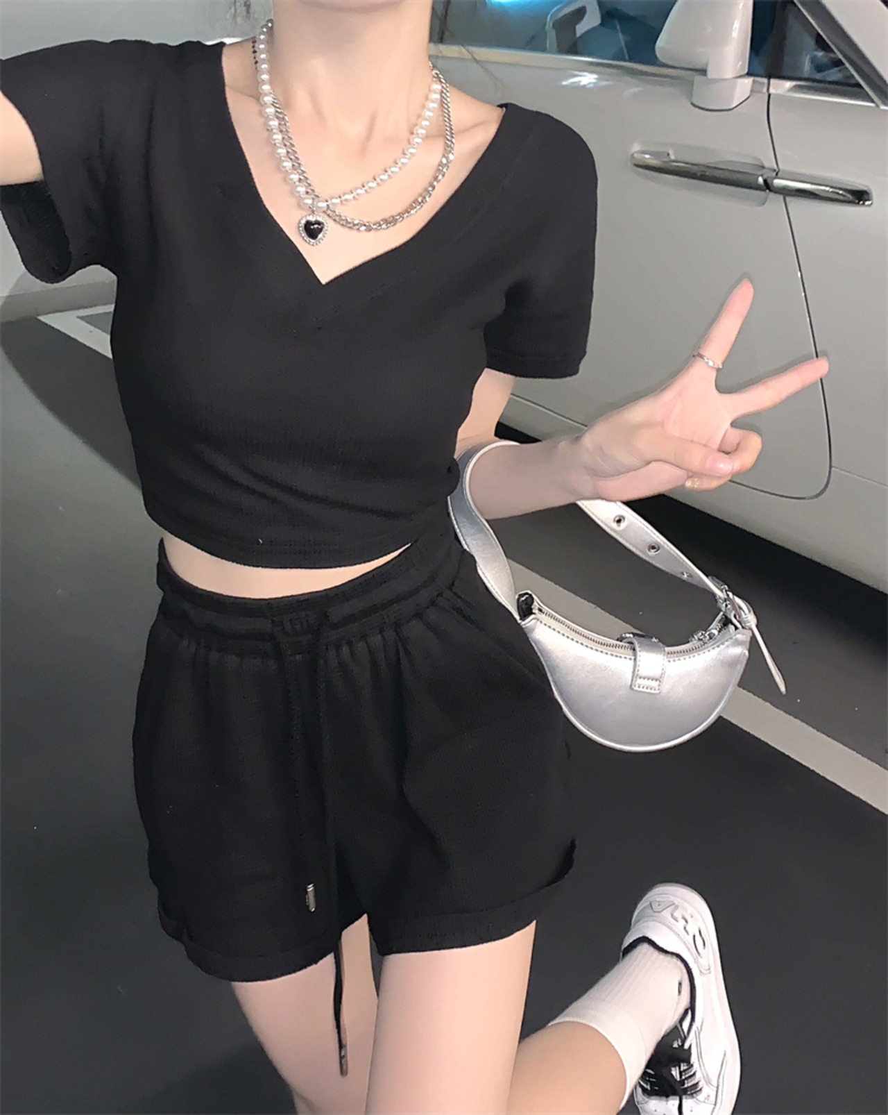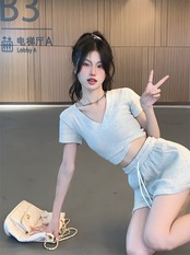 Gray fashion suit female summer 2022 new style short-sleeved t-shirt wide-leg shorts net red fried street two-piece レッド ストリート サマー 夏物 ショーツ ブルマー Tシャツ 0921910101630673