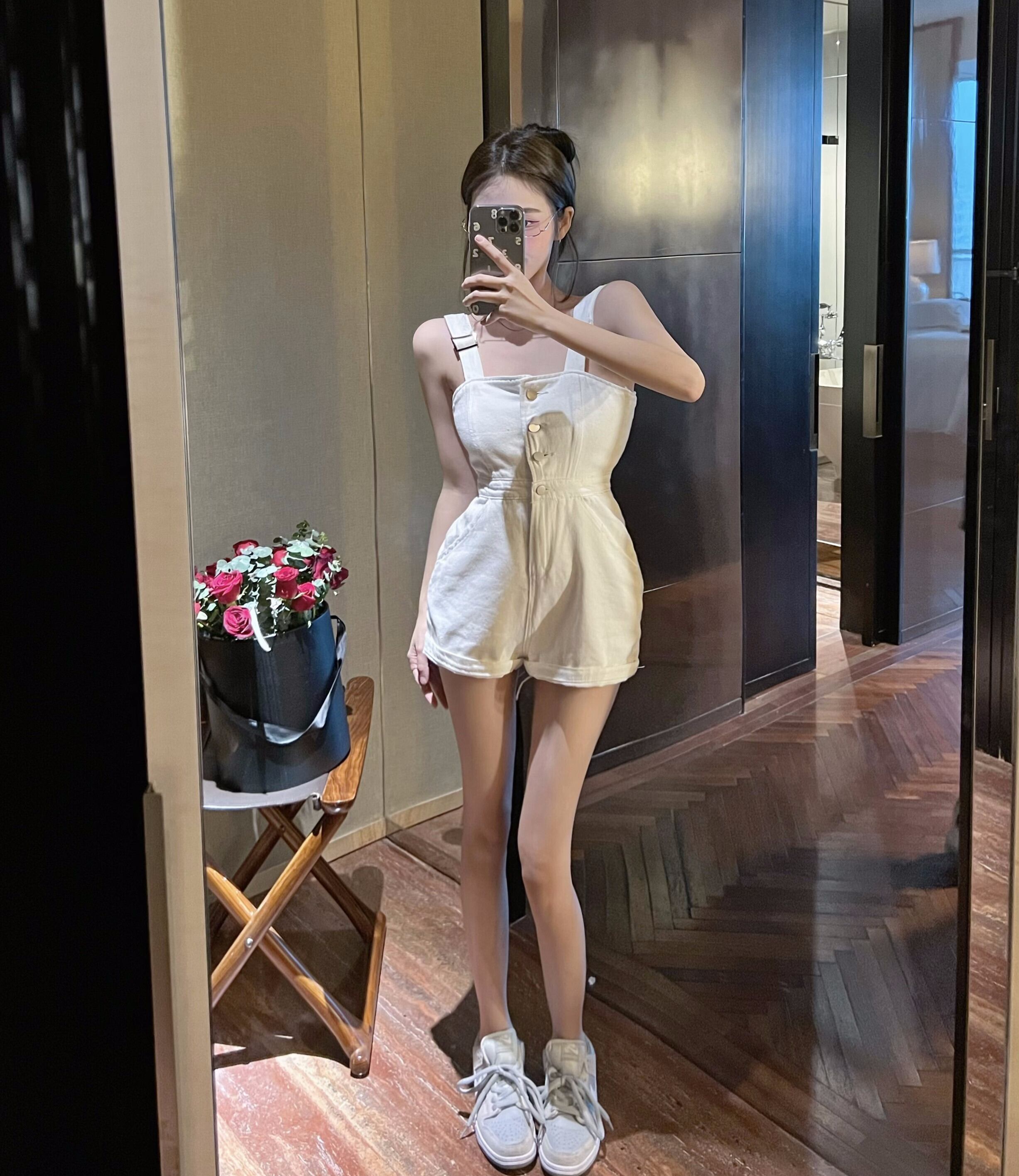 sense breasted blue denim jumpsuit women's summer 2022 new age-reducing overalls high waist wide leg pants trend ハイウェスト ブルー サマー 夏物 ワイドレッグ ワイドパンツ 092197770935328