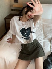 Creative love print short-sleeved t-shirt women's summer 2022 new version fashion lazy wind loose top ins tide サマー 夏物 Tシャツ 0921989696260048