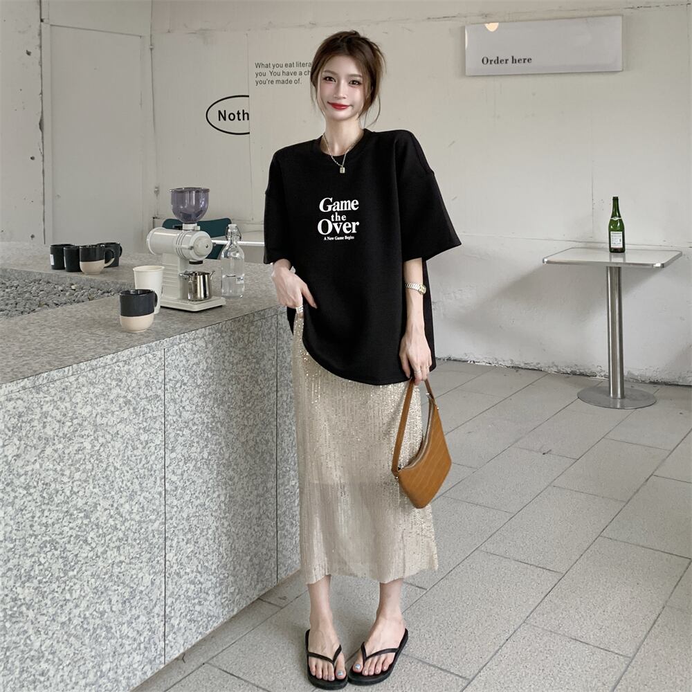 Letter printing thin loose t-shirt women's ins tide summer 2022 new version of the lazy style white half-sleeved top ホワイト サマー 夏物 Tシャツ 0921921193005995